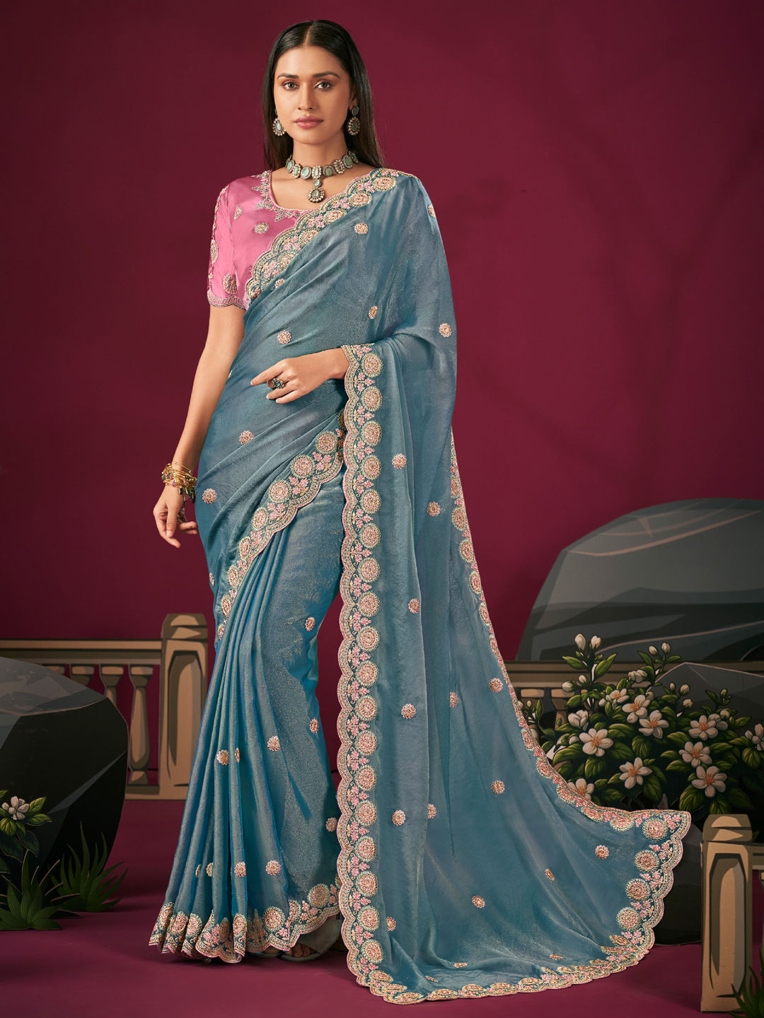Blue color Saree in Silk fabric with Embroidered, Thread, Zari work