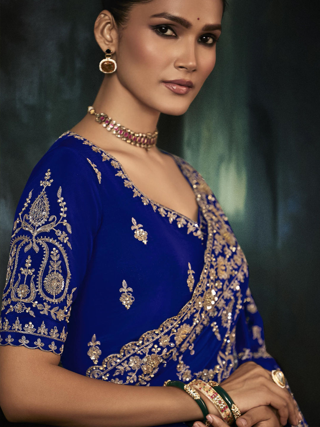 Blue color Saree in Silk fabric with Embroidered, Sequence, Thread work