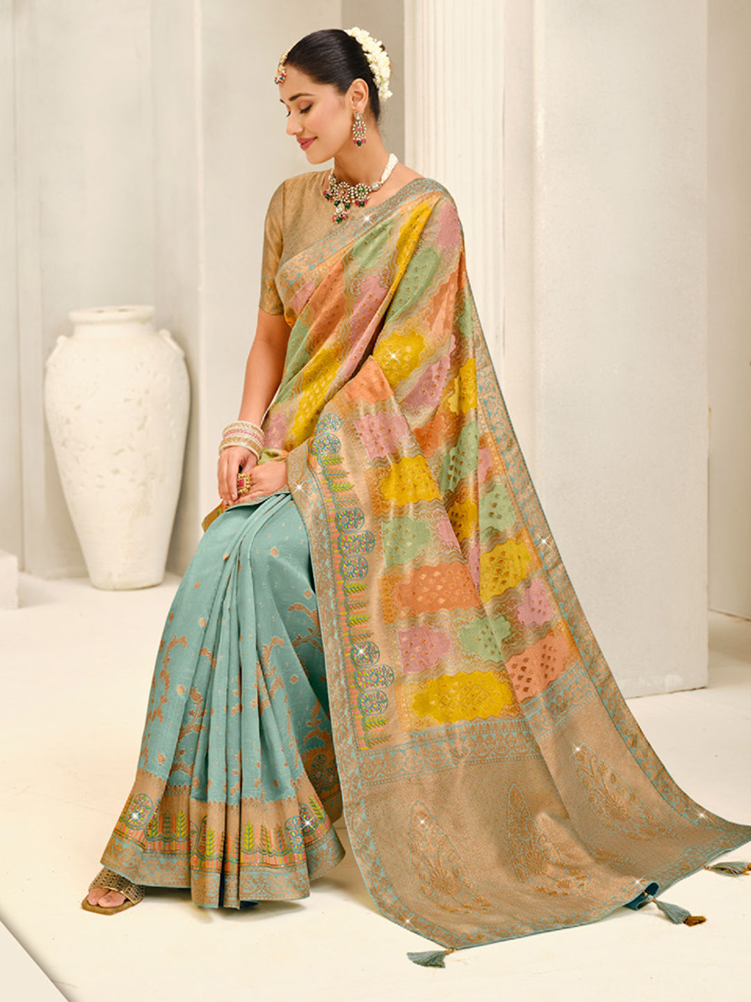 Blue color Saree in Silk fabric with Stone, Weaving, Zari work