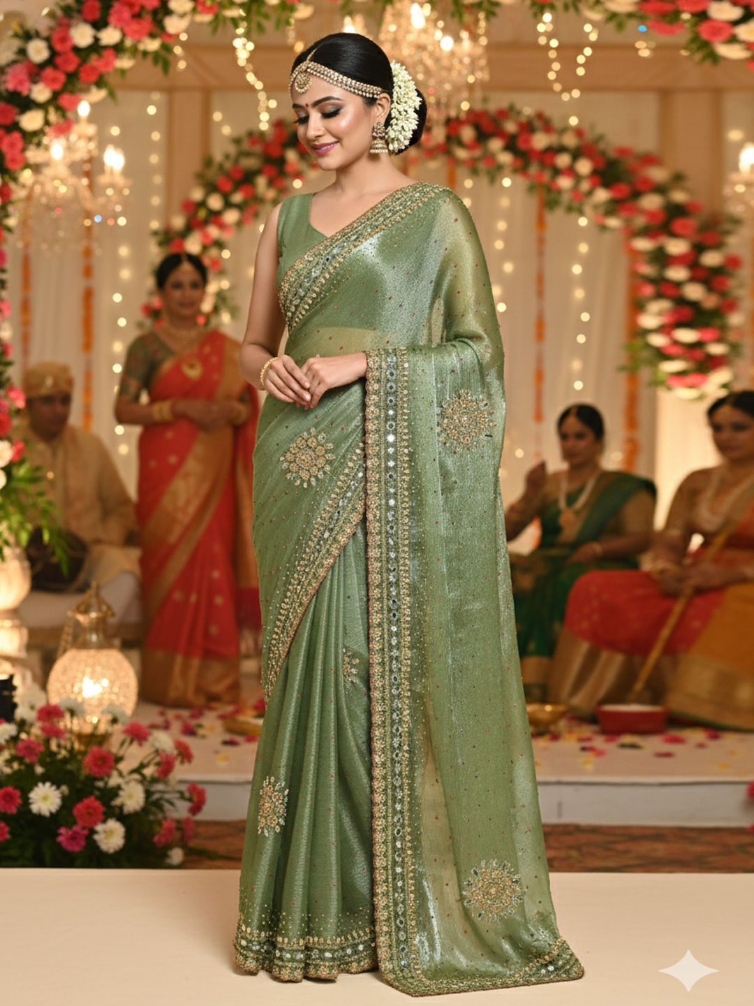 Green color Saree in Silk fabric with Embroidered, Sequence work