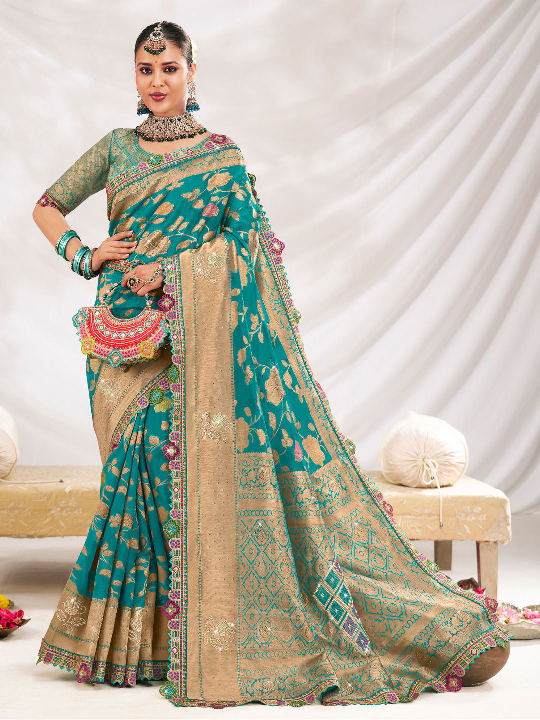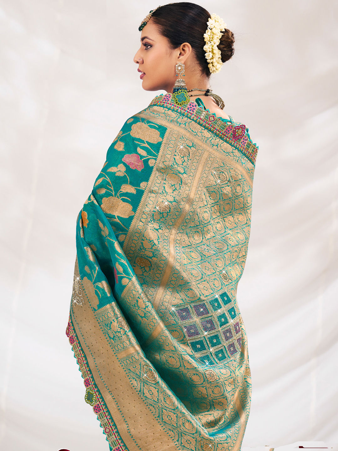 Green color Saree in Silk fabric with Border, Sequence, Stone, Weaving work
