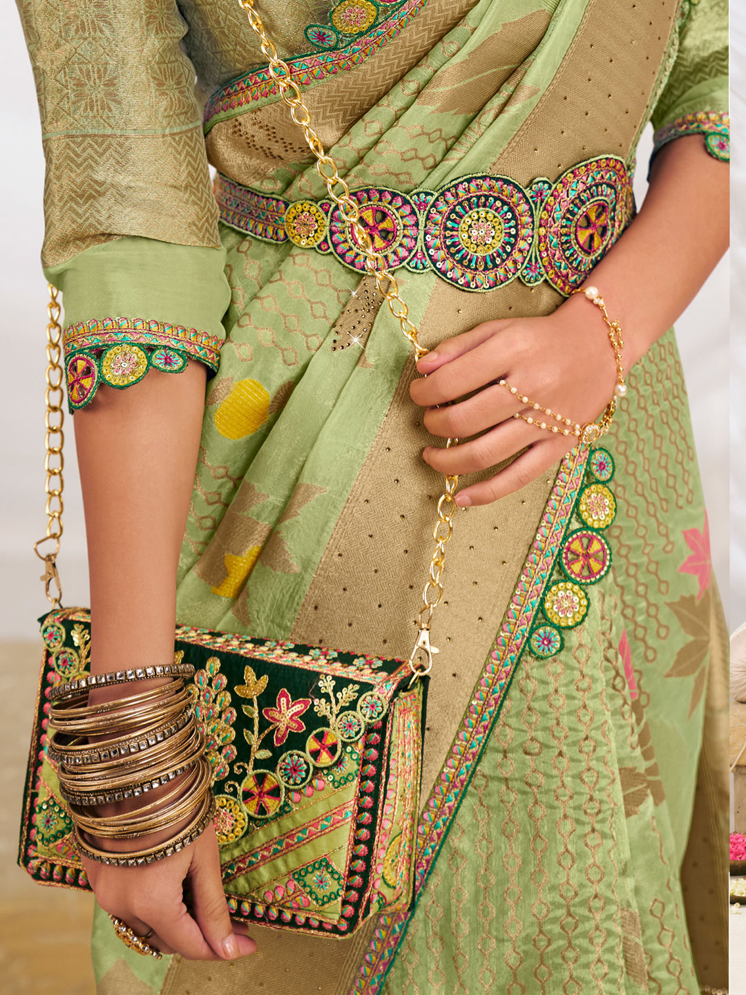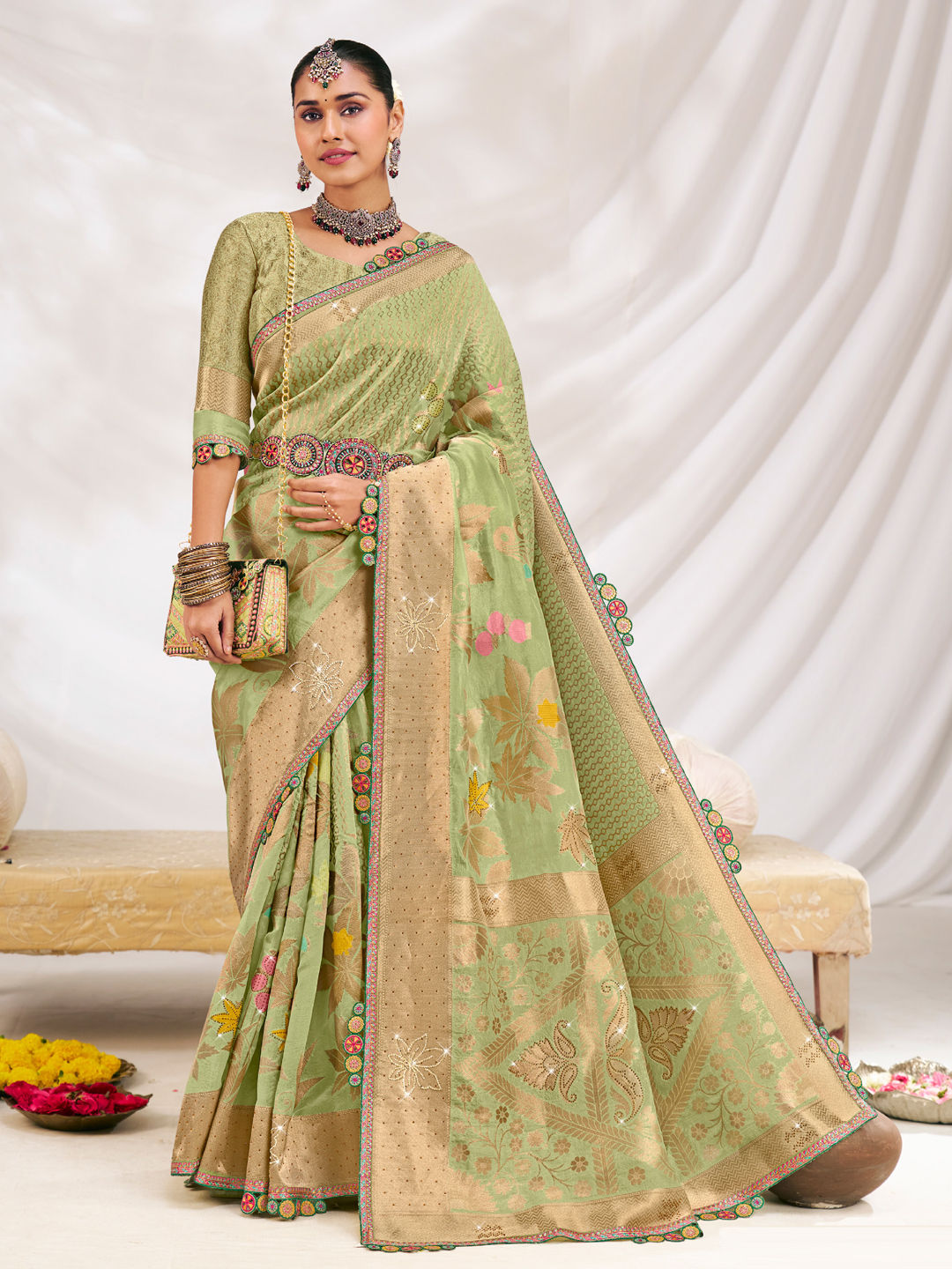 Green color Saree in Silk fabric with Border, Sequence, Stone, Weaving work