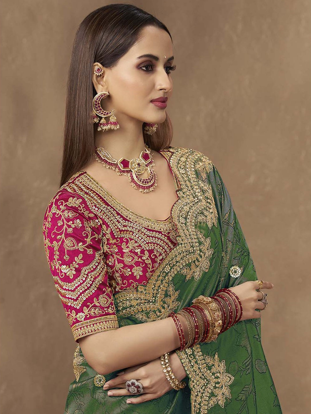 Silk Bridal Saree in Red and Maroon with Sequence work