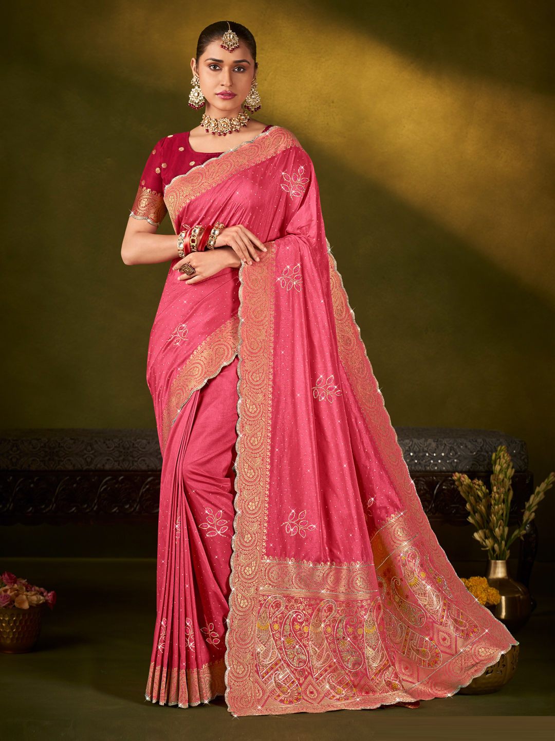 Silk Bridal Saree in Pink and Majenta with Swarovski work