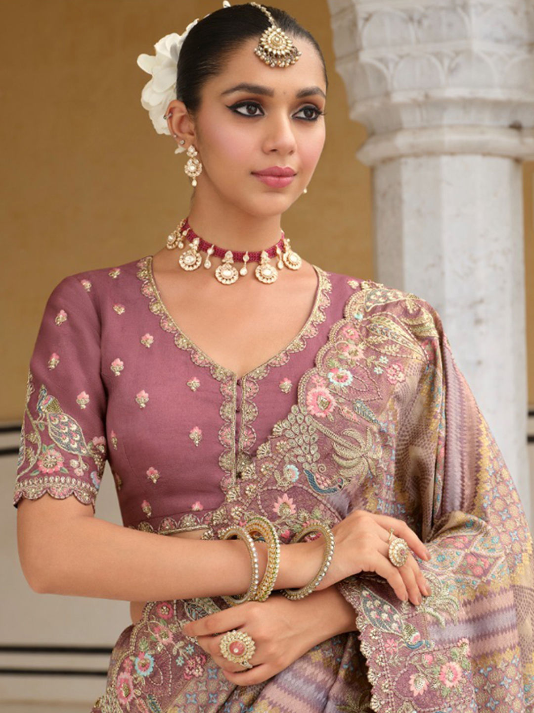 Purple and Violet color Saree in Silk fabric with Embroidered, Sequence, Thread work