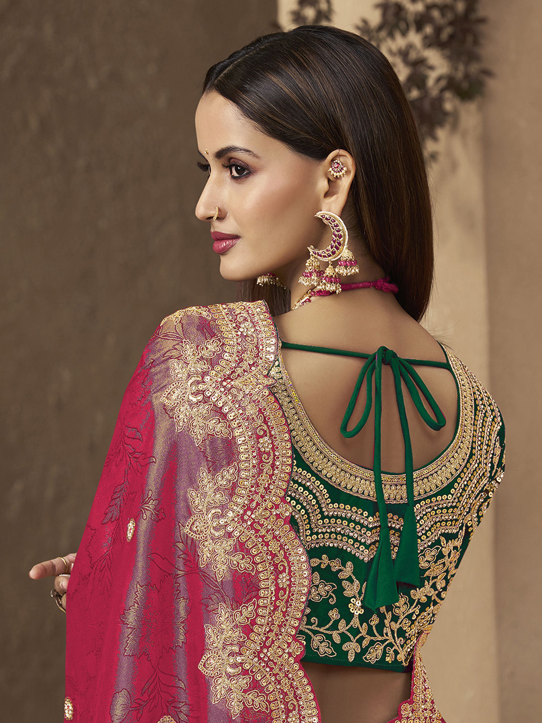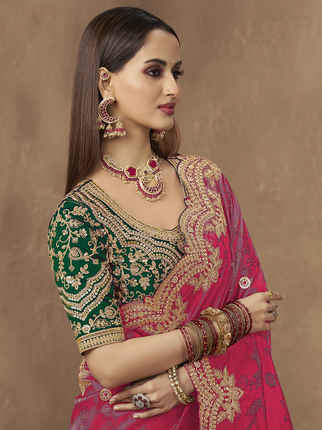 Red and Maroon color Saree in Silk fabric with Sequence, Thread work