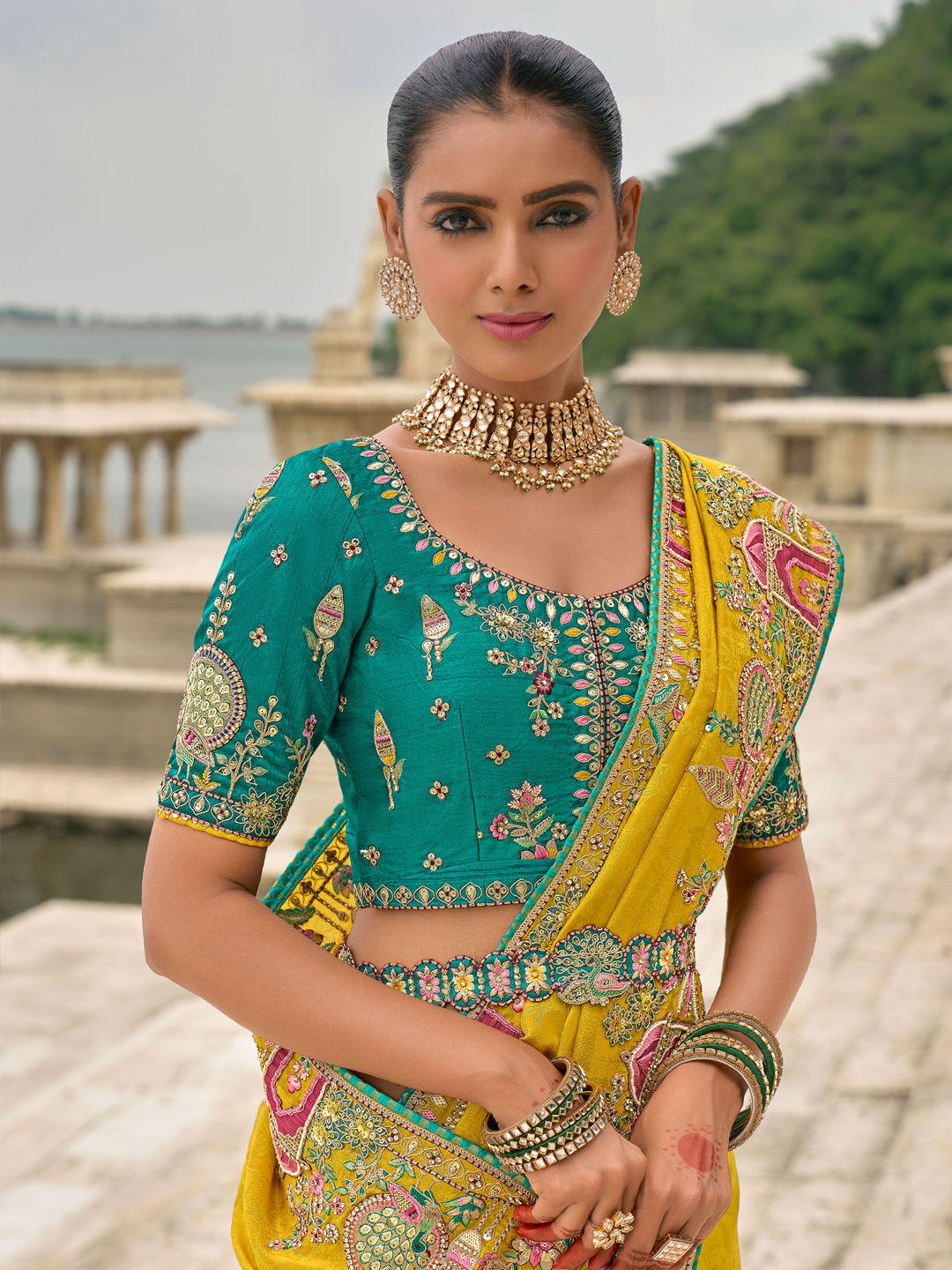 Yellow color Saree in Silk fabric with Border, Embroidered, Resham, Stone, Thread, Zari work