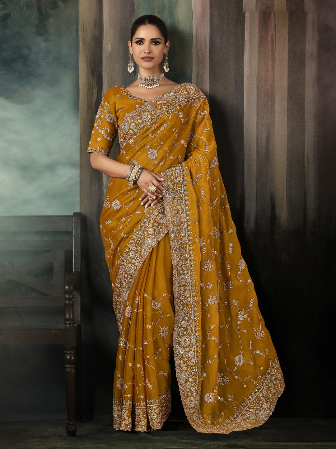 in Yellow with Embroidered work