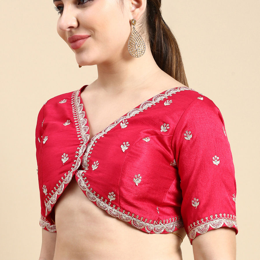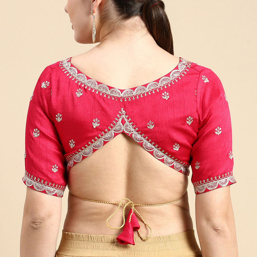 Pink and Majenta color Blouse in Silk fabric with Embroidered, Thread work