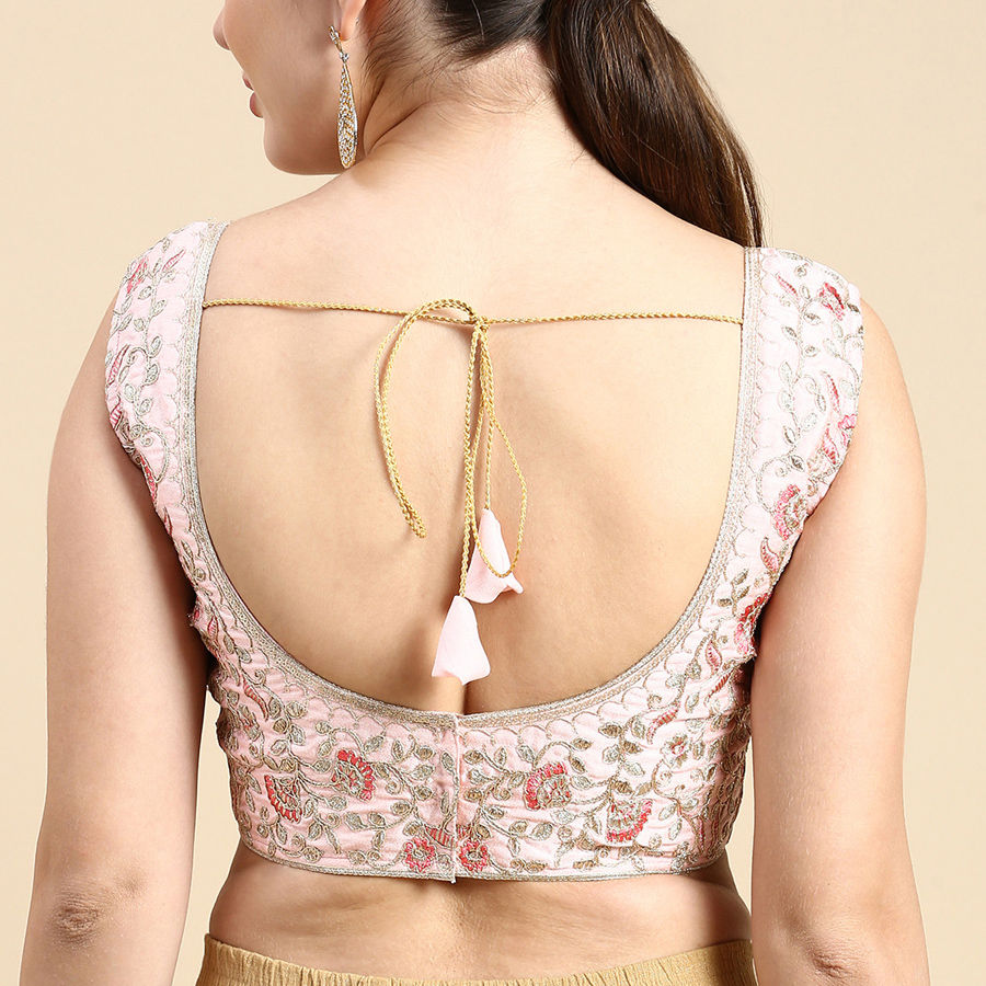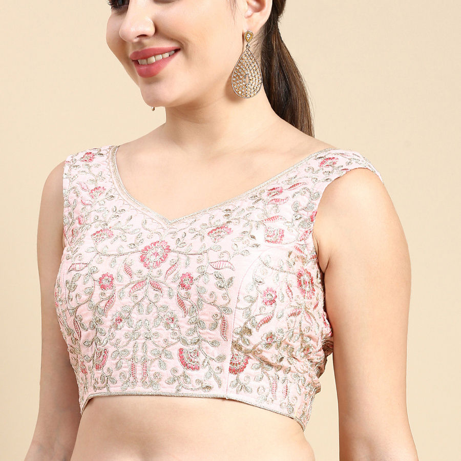 Pink and Majenta color Blouse in Silk fabric with Embroidered, Thread work