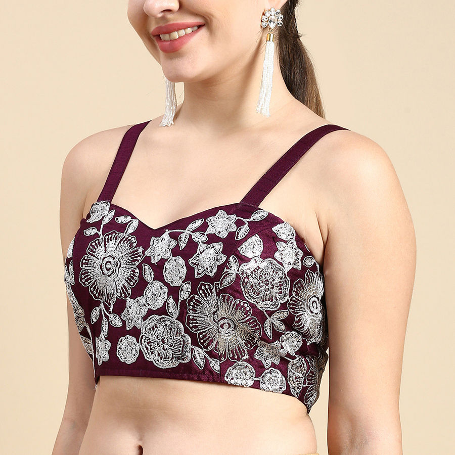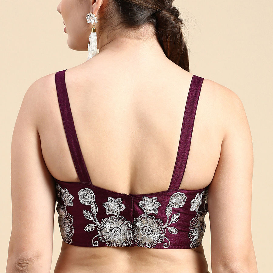 Purple and Violet color Blouse in Silk fabric with Embroidered, Thread work