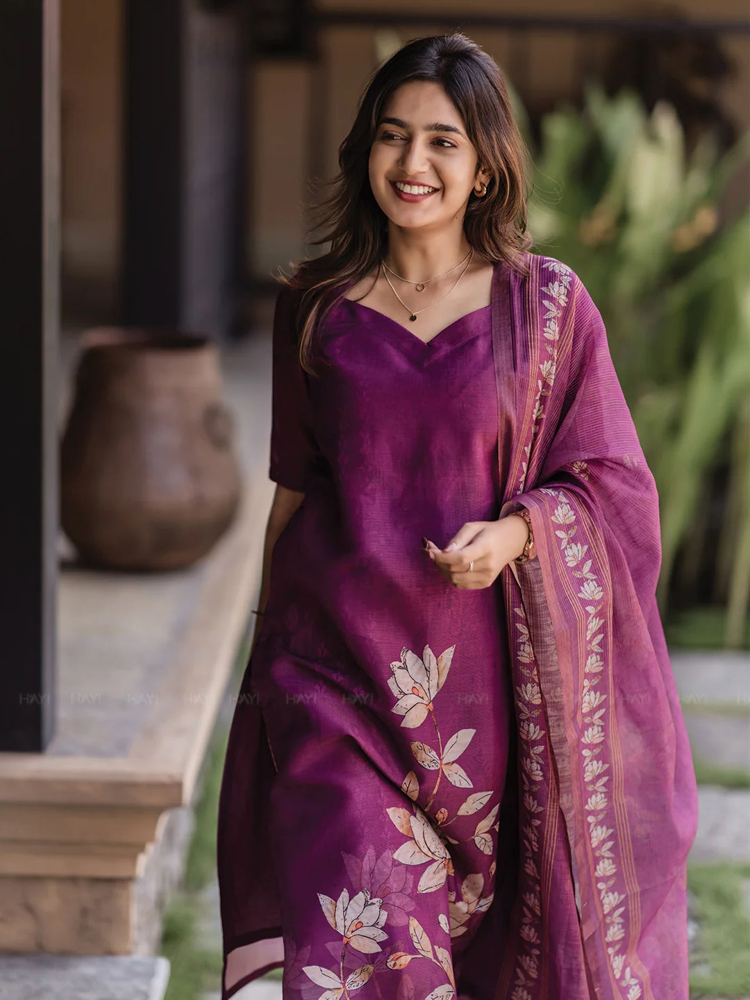 Pink and Majenta color Kurti in Silk fabric with Printed work