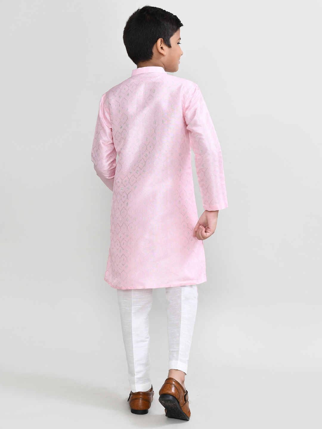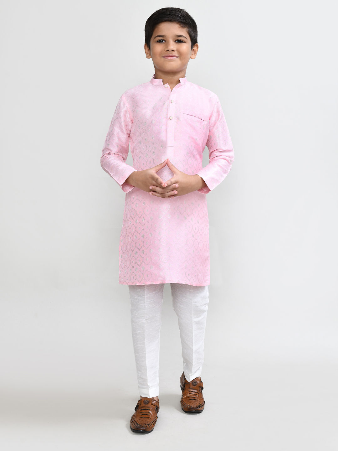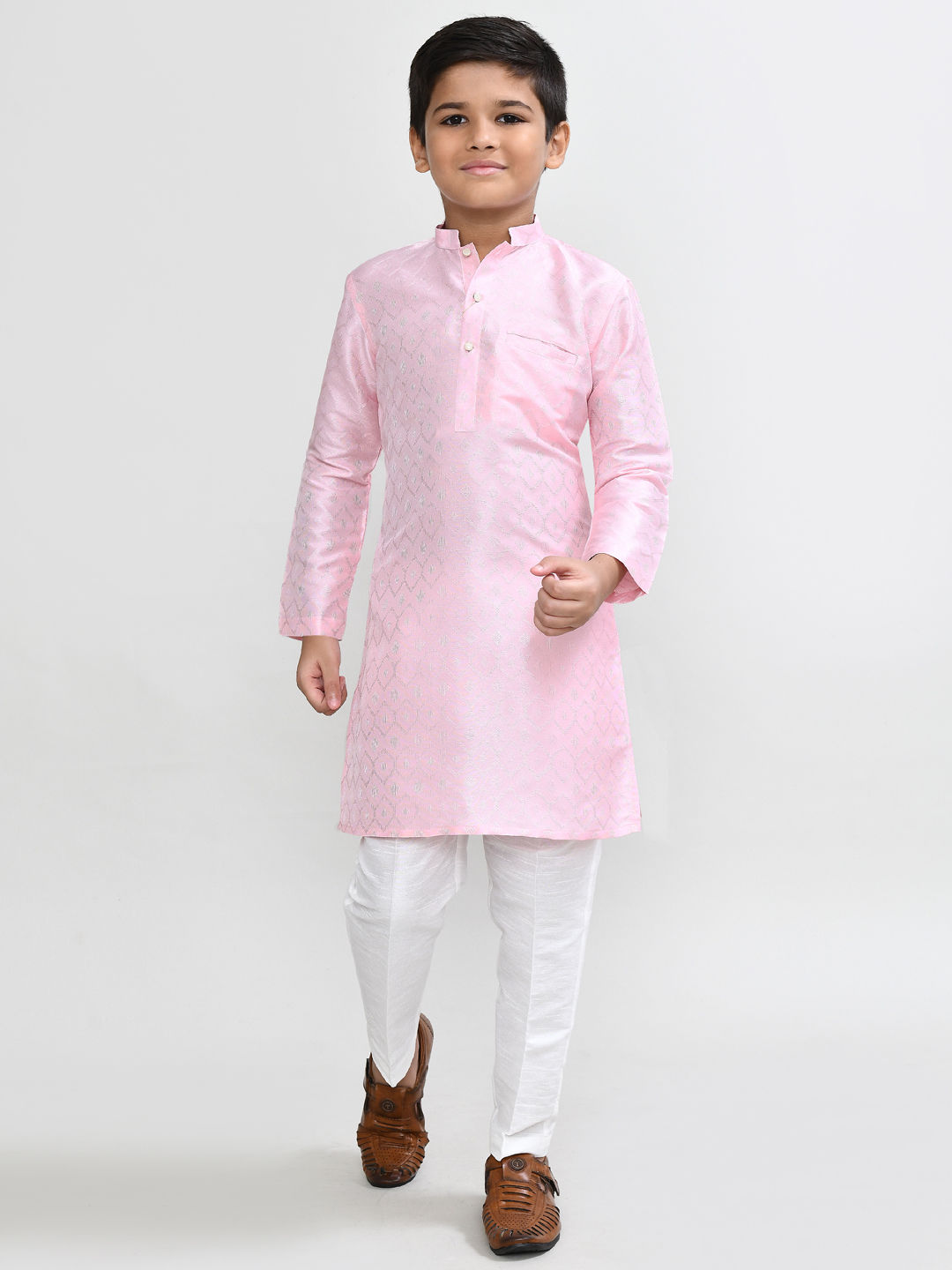 Pink and Majenta color Boys Kurta Pyjama in Silk cotton fabric with Printed work