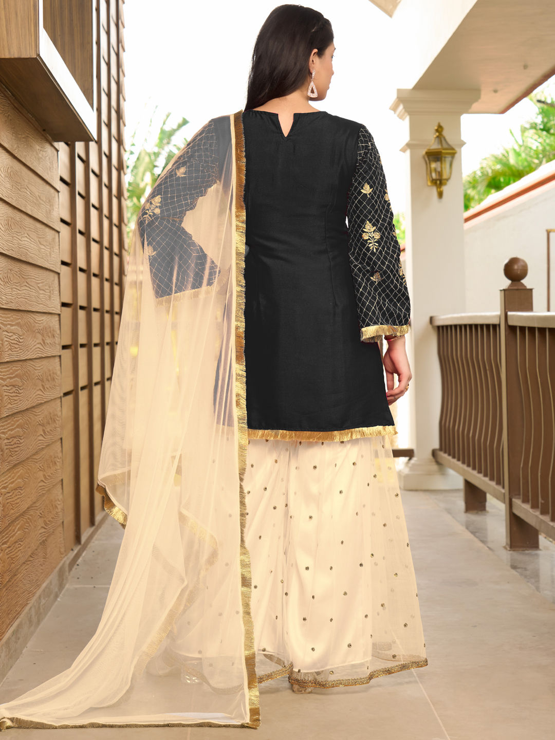 Art Silk Wedding Salwar Kameez in Black and Grey with Thread work