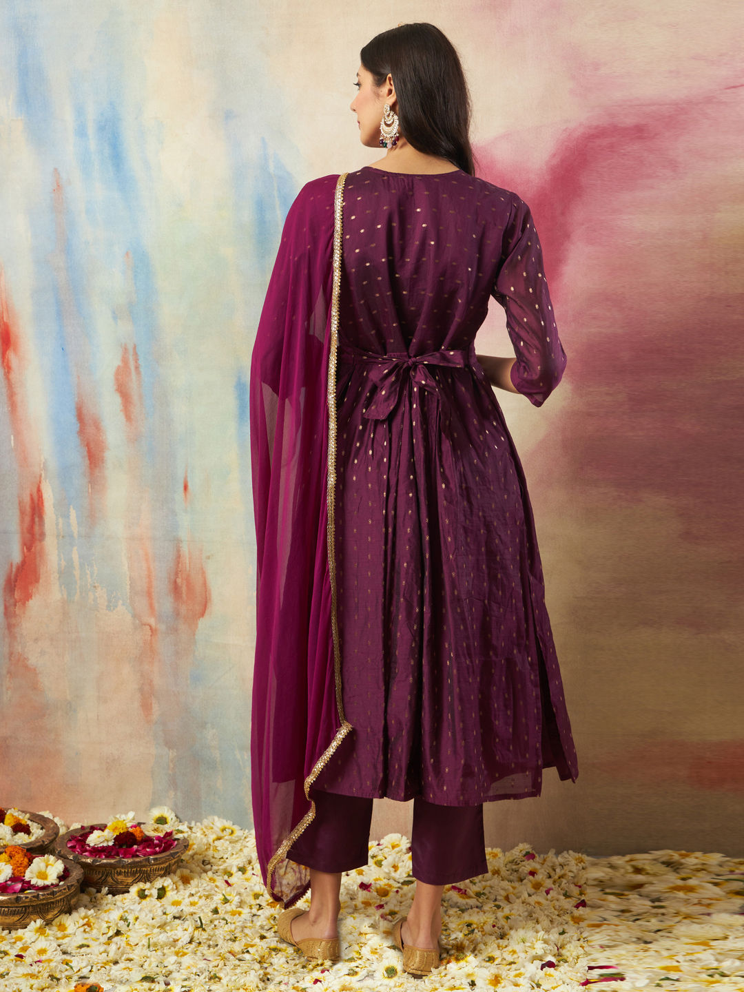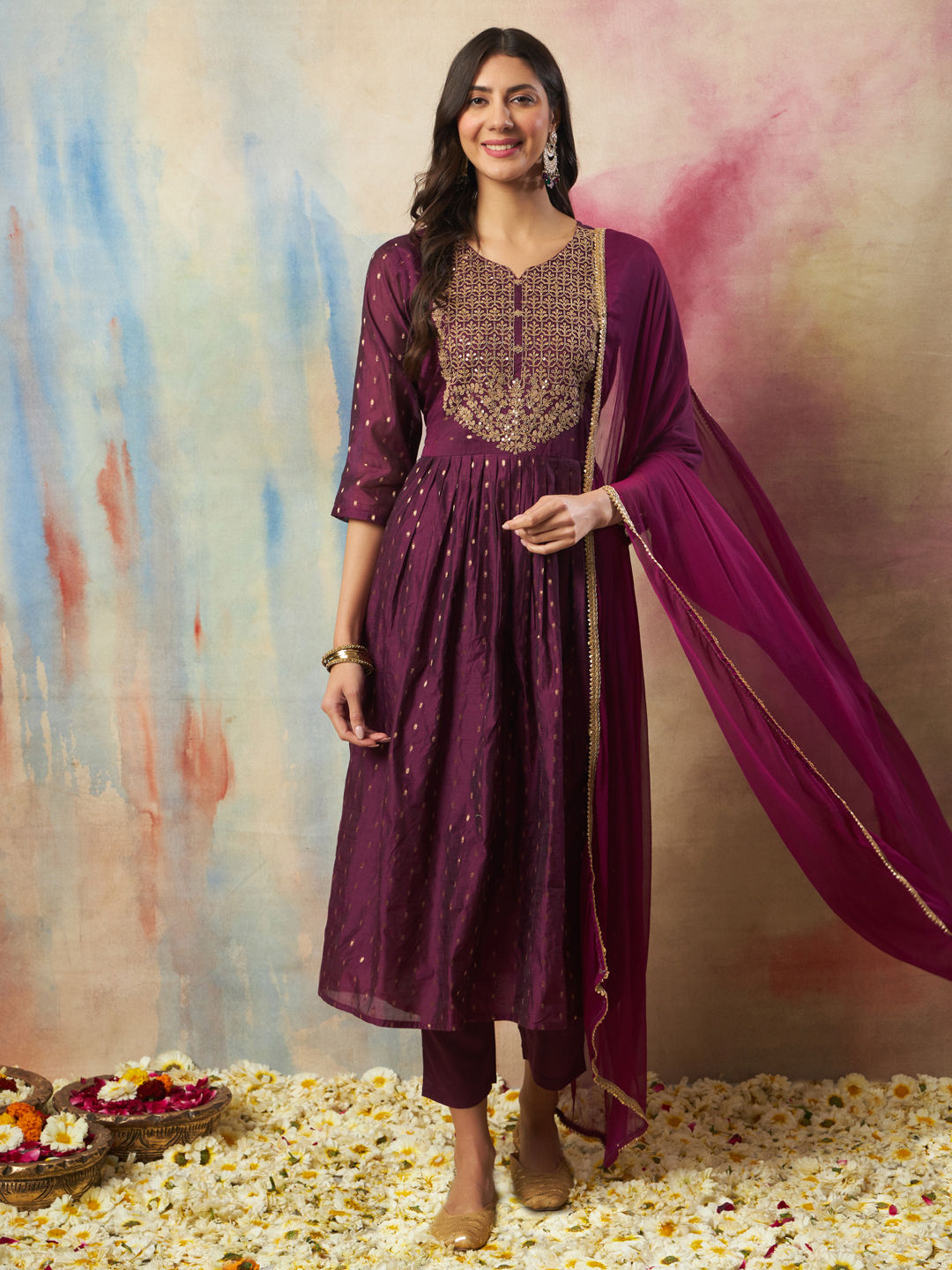 Purple and Violet color Salwar Kameez in Silk cotton fabric with Embroidered, Sequence, Thread work
