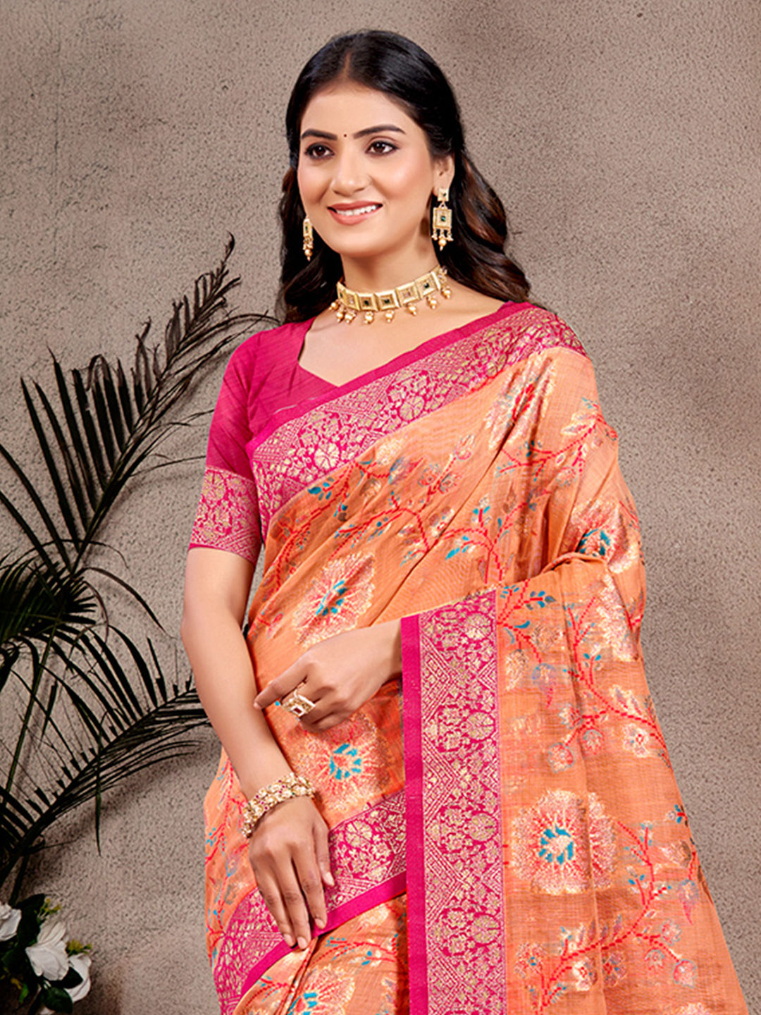 Silk cotton Party Wear Saree in Beige and Brown with Weaving work