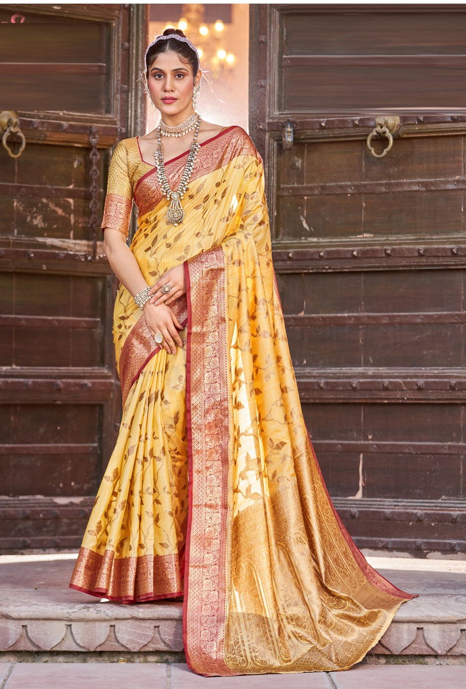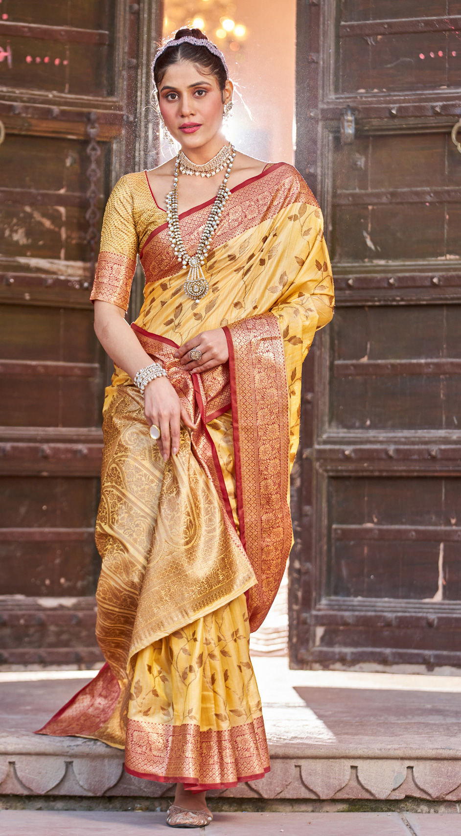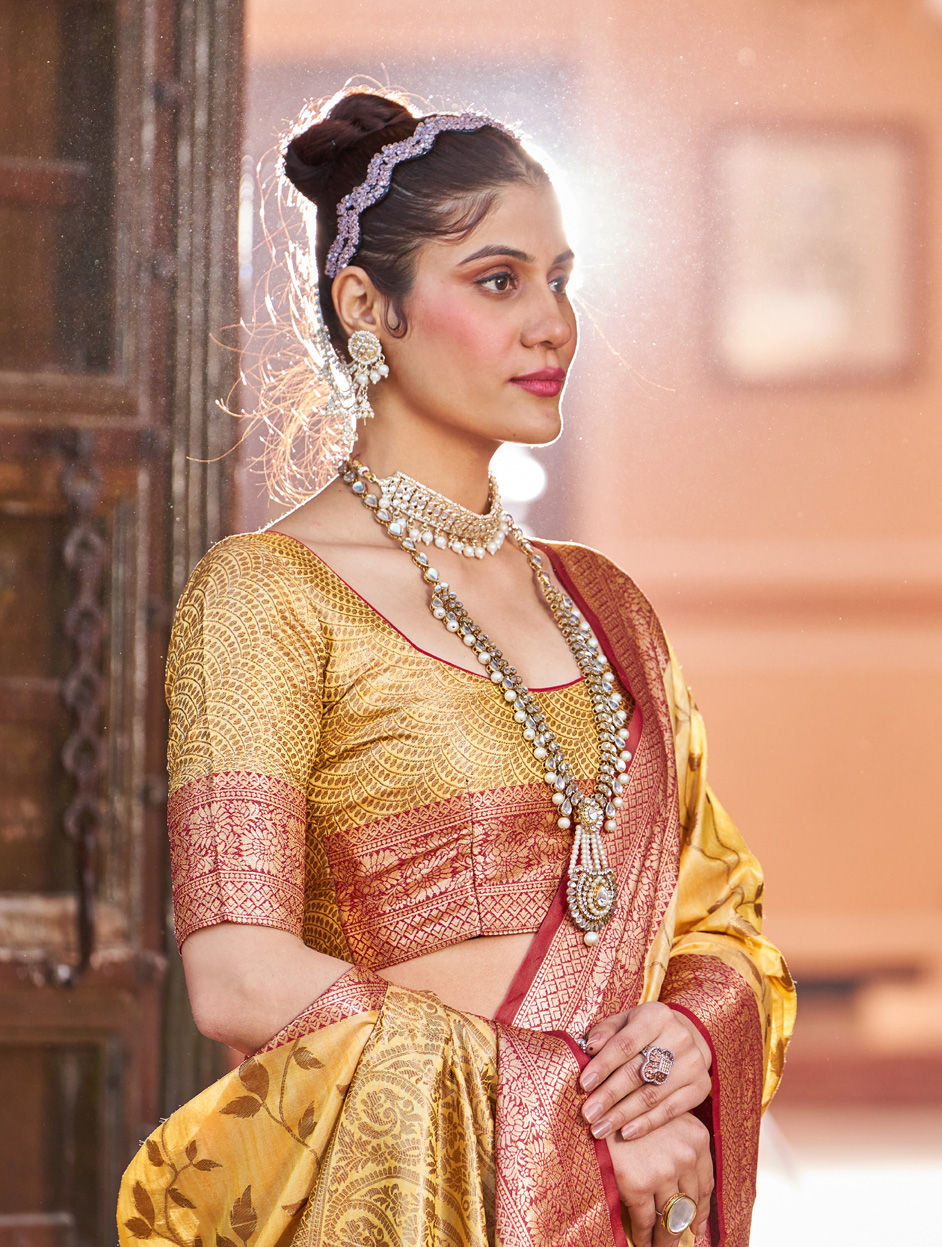 in Yellow with Weaving work