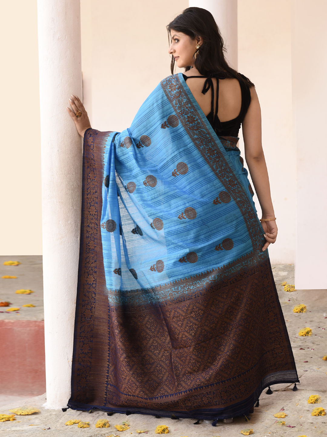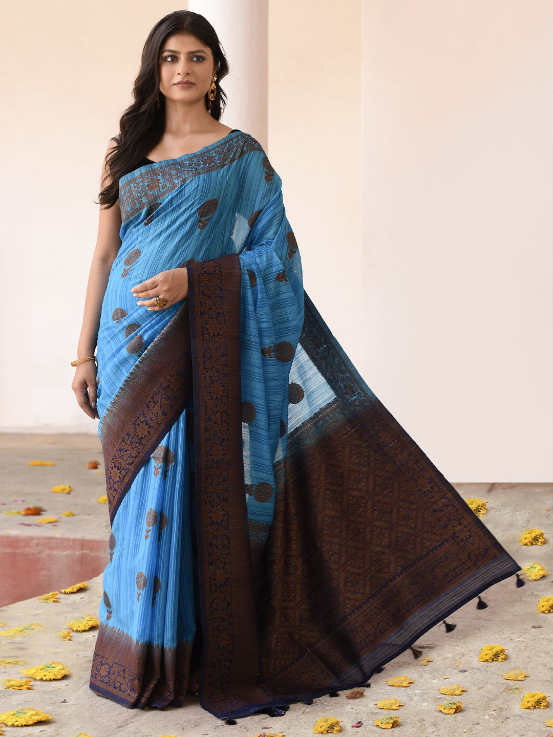 Tissue Traditional Saree in Gold with Zari work