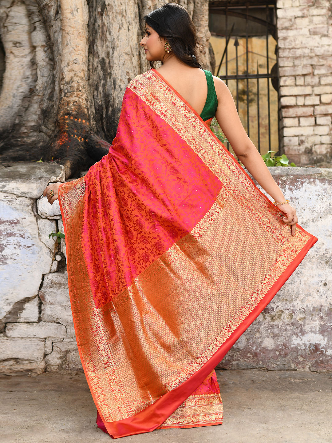 Banarasi Silk Traditional Saree in Red and Maroon with Zari work
