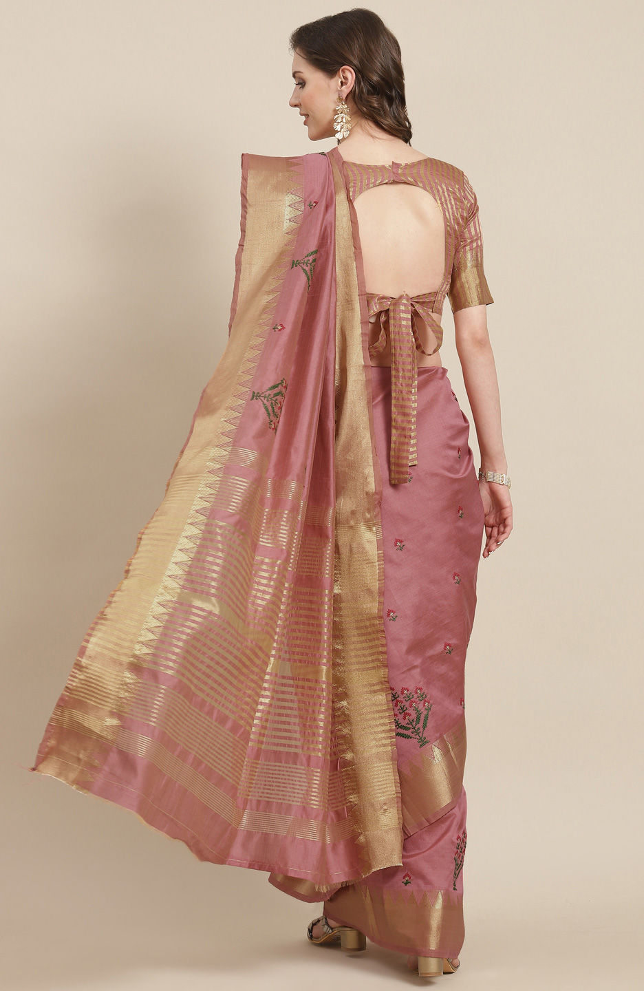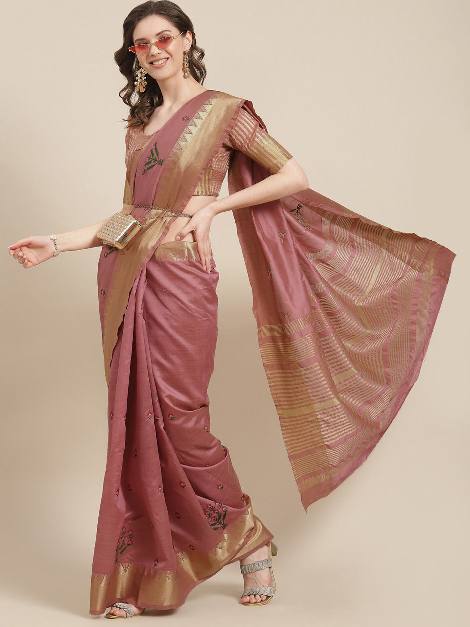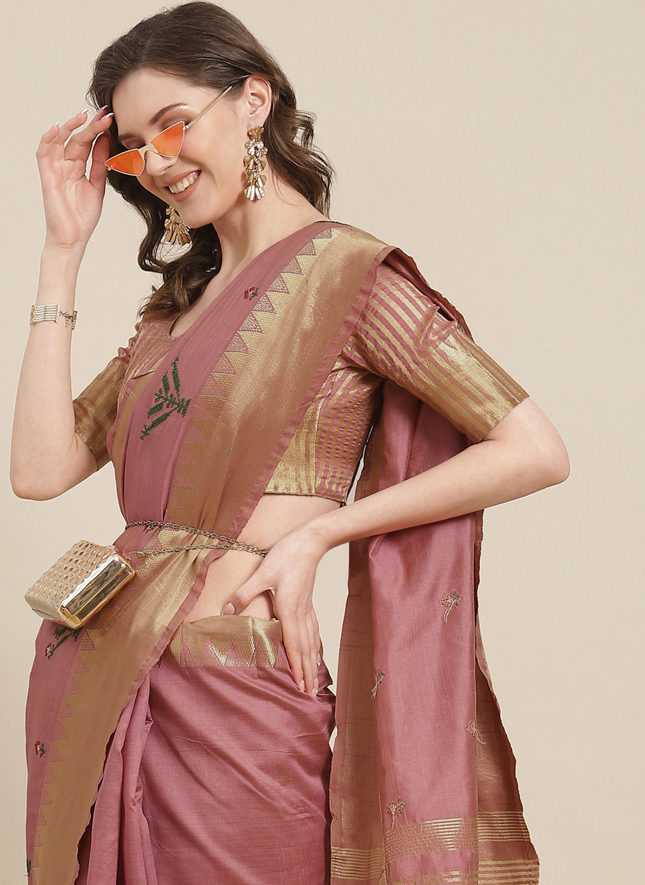 Silk cotton Traditional Saree in Pink and Majenta with Thread work