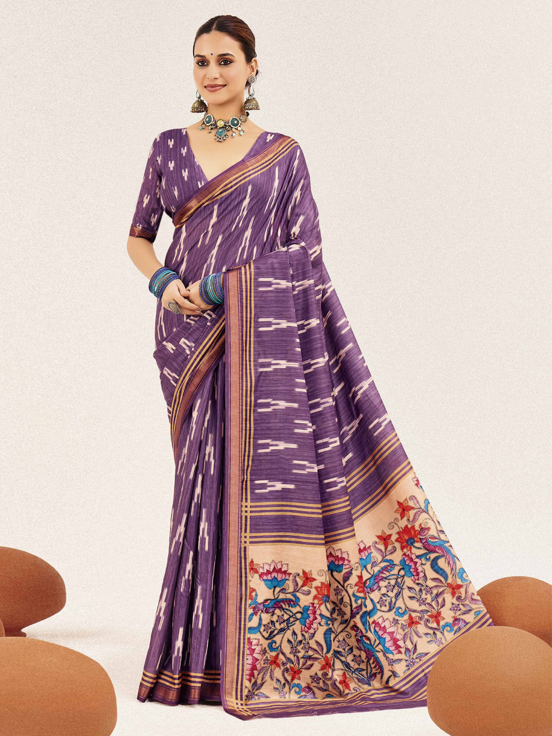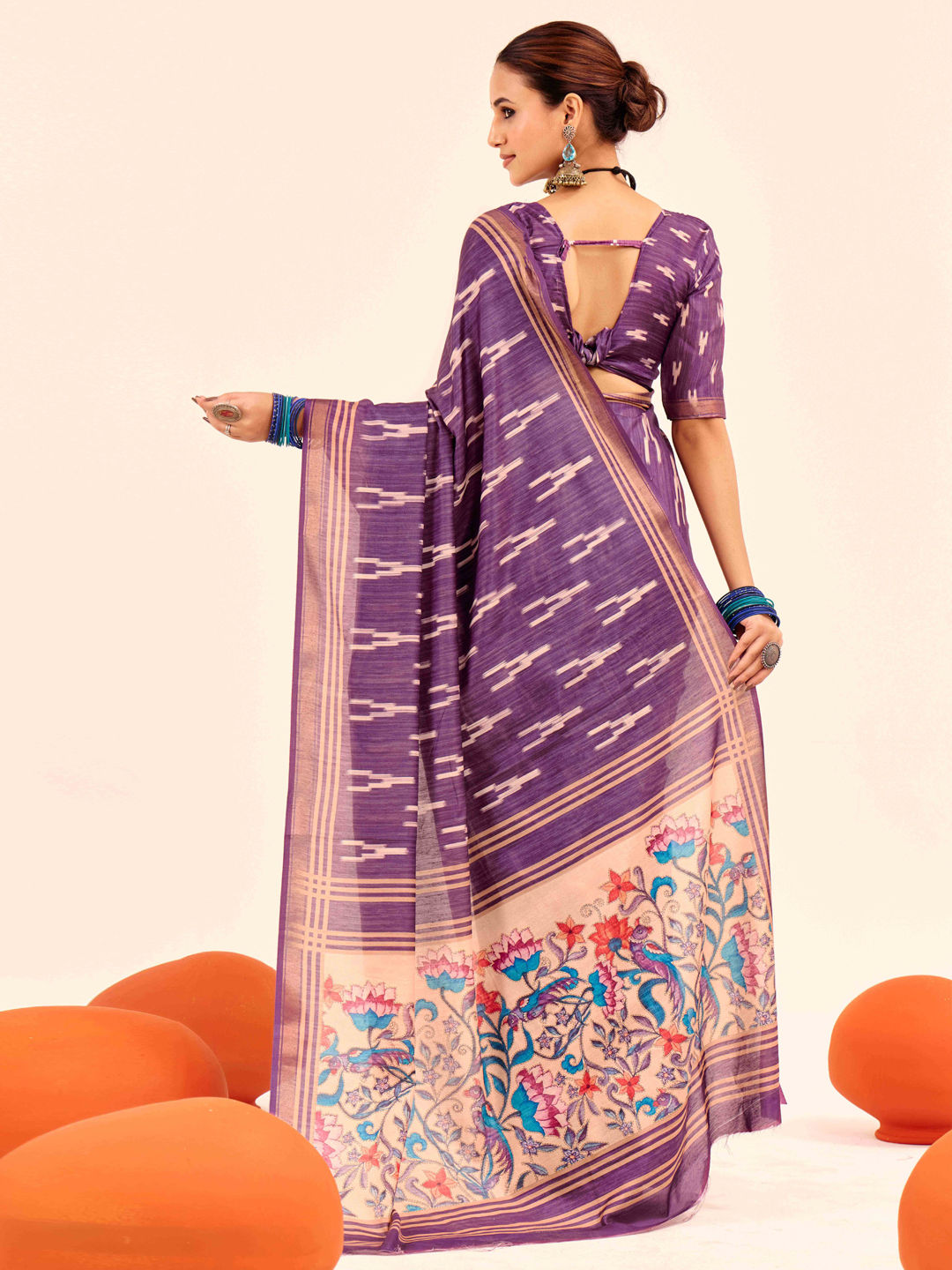Silk cotton Festive Saree in Purple and Violet with Digital Print work