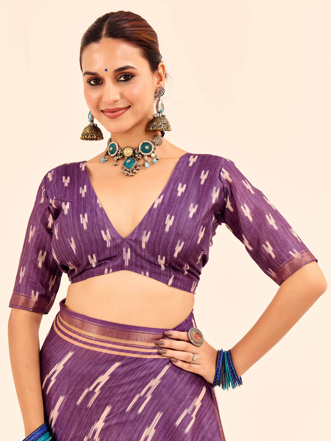 in Purple and Violet with Digital Print work