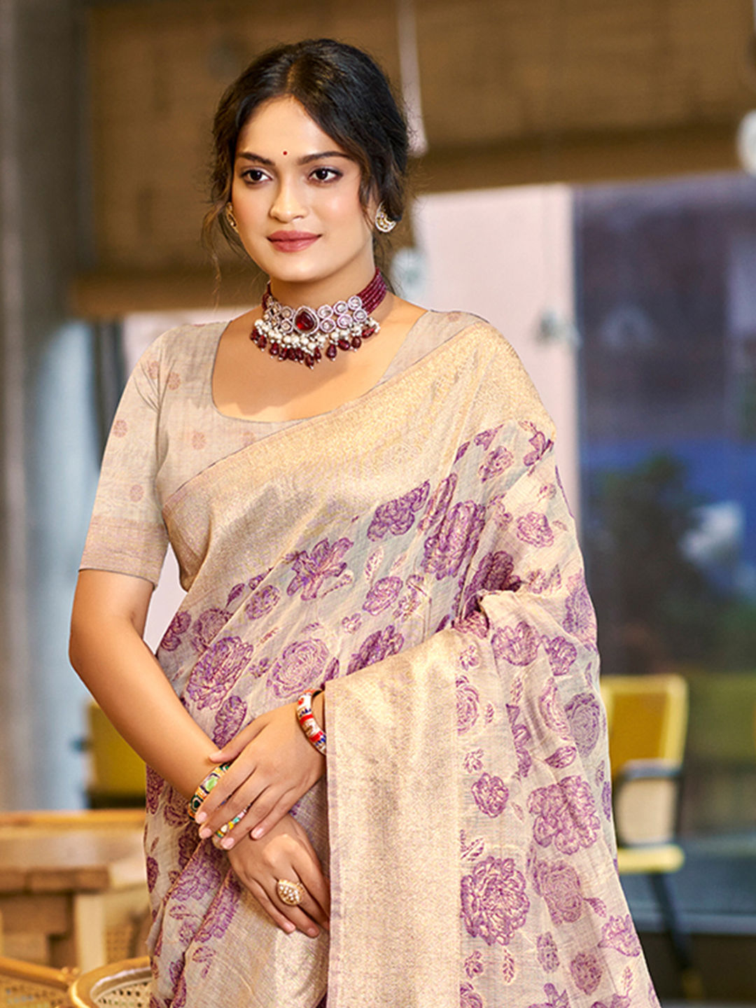 Purple and Violet color Saree in Silk cotton fabric with Weaving work