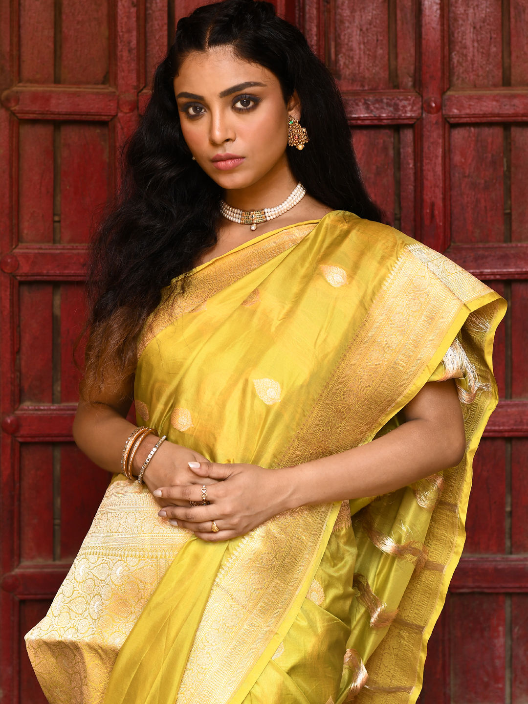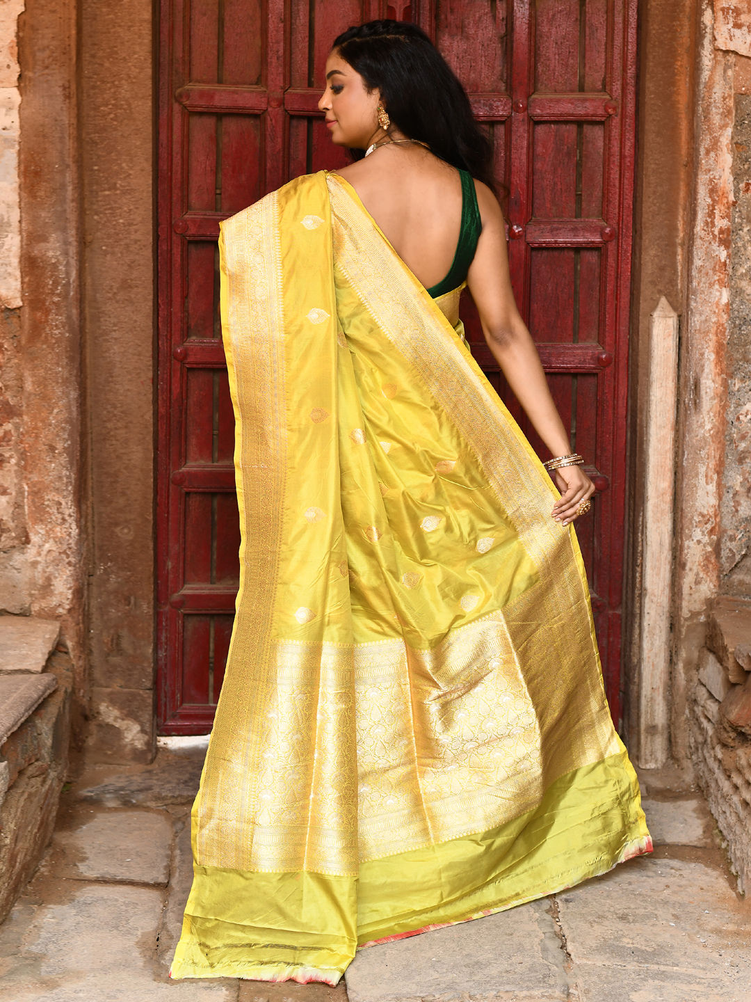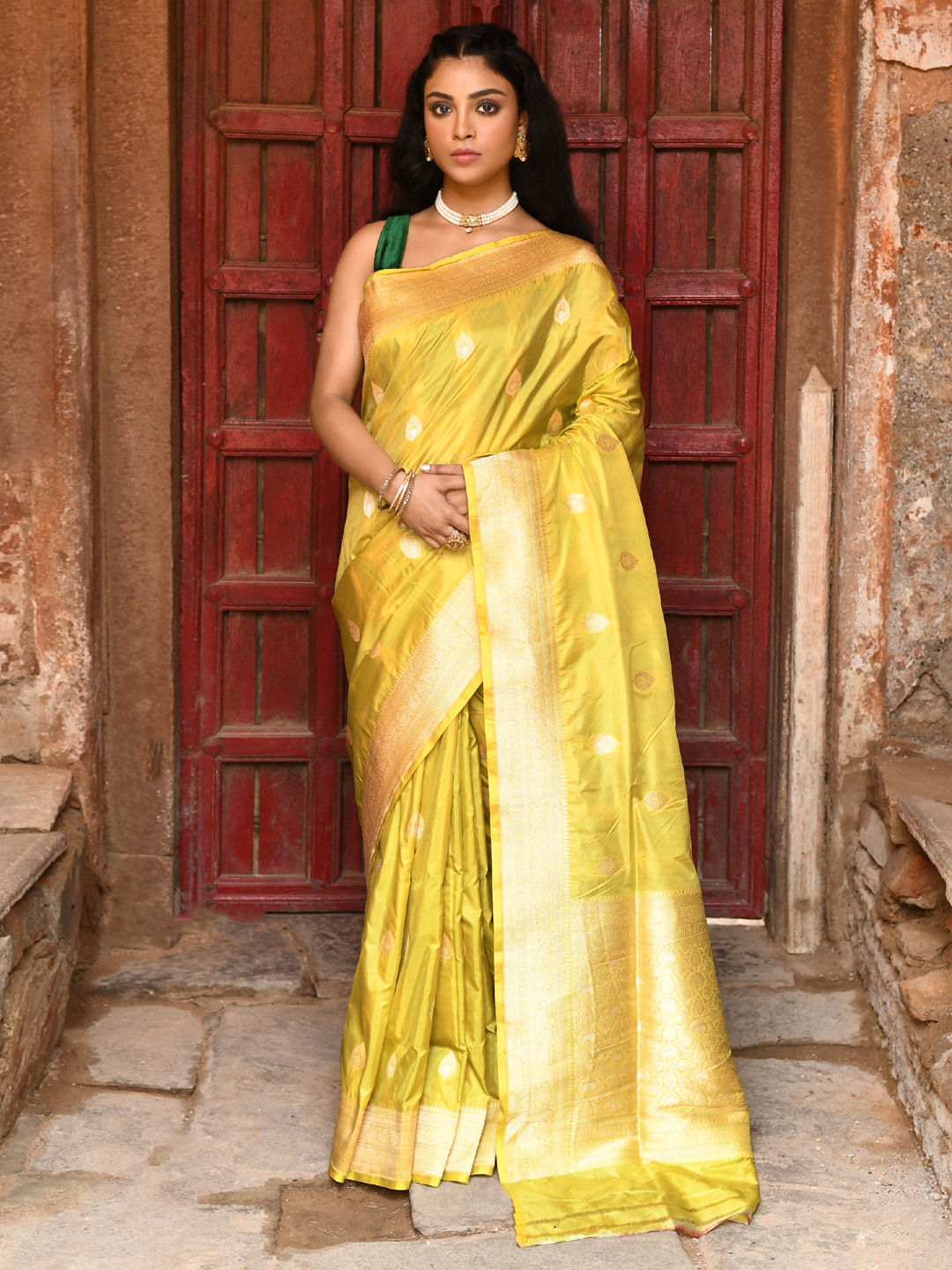 in Yellow with Zari work