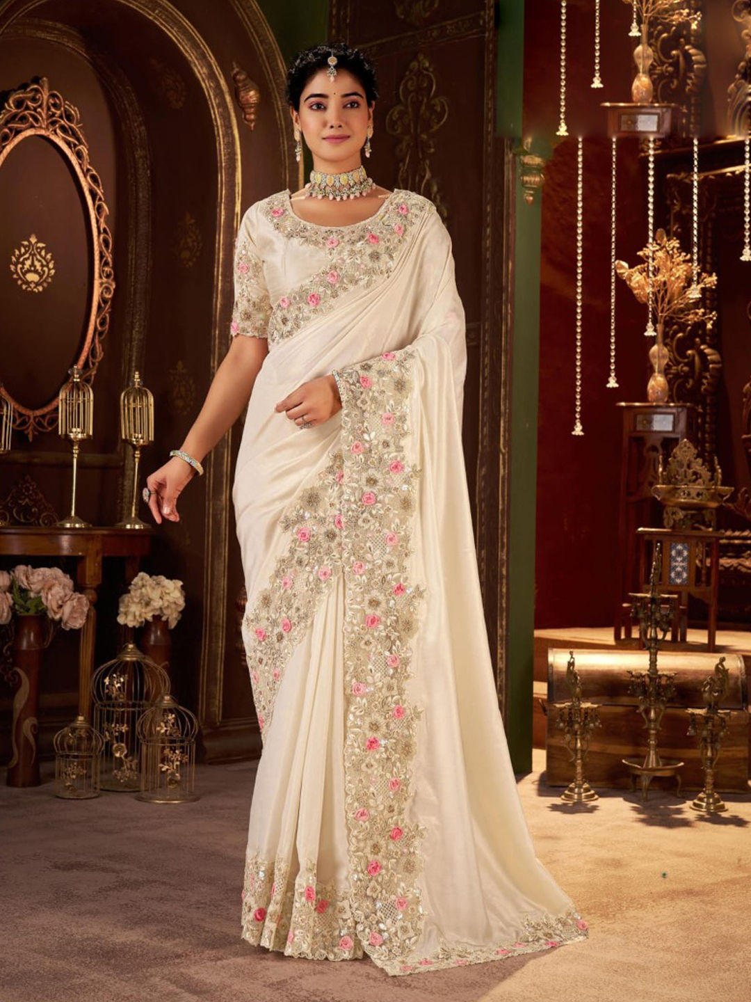 Beige and Brown color Saree in Silk fabric with Embroidered, Sequence, Thread work