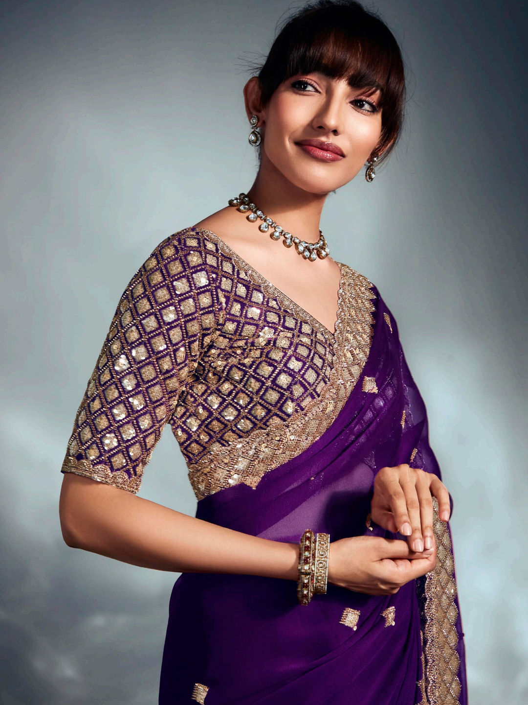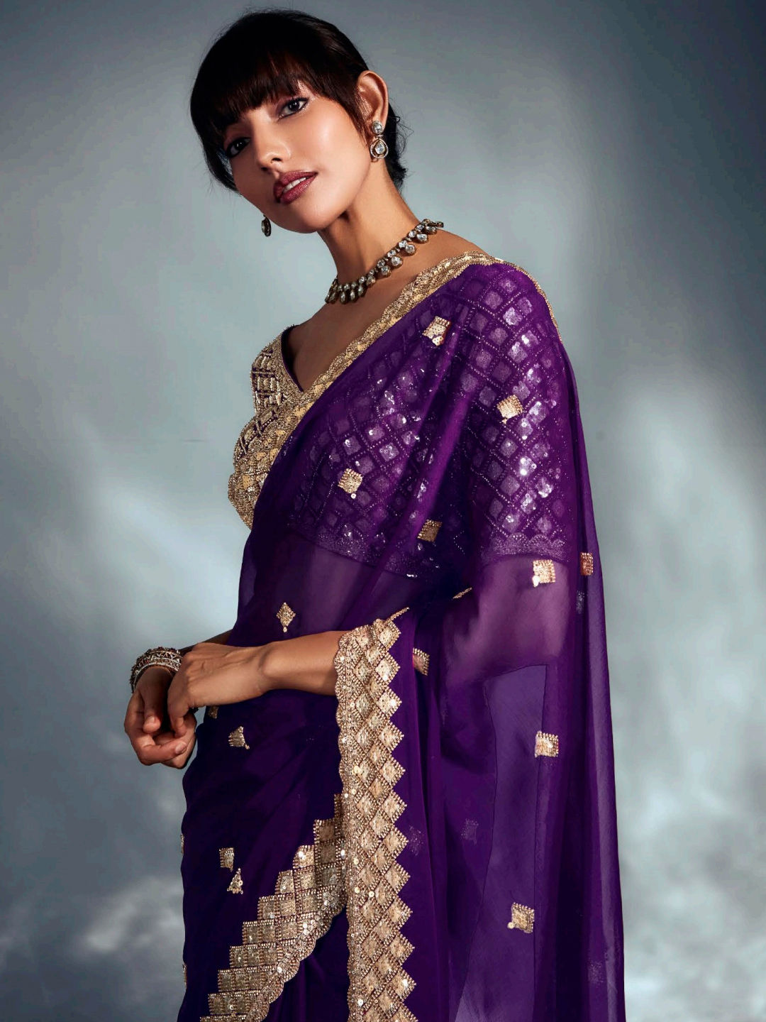 Purple and Violet color Saree in Silk fabric with Embroidered, Resham, Sequence, Zari work