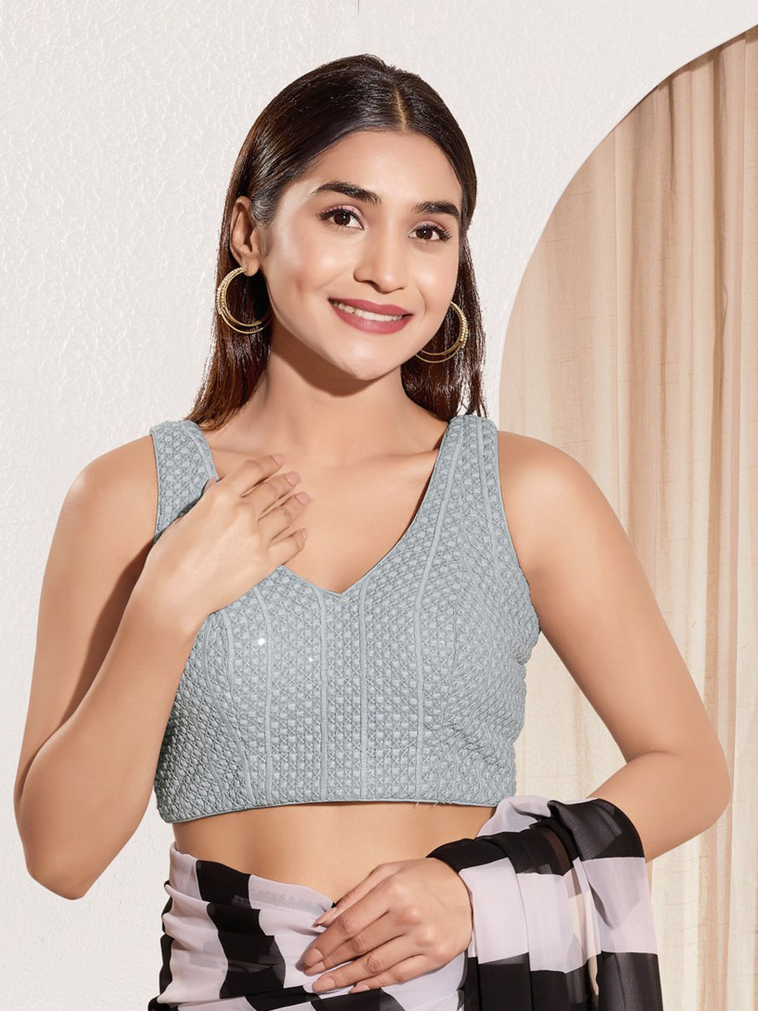 Net Festive Blouse in Pink and Majenta with Embroidered work