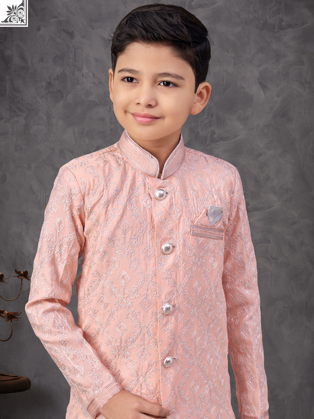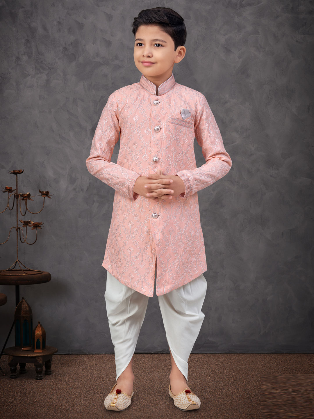 Pink and Majenta color Boys Dhoti Sherwani in Silk fabric with Embroidered, Thread work
