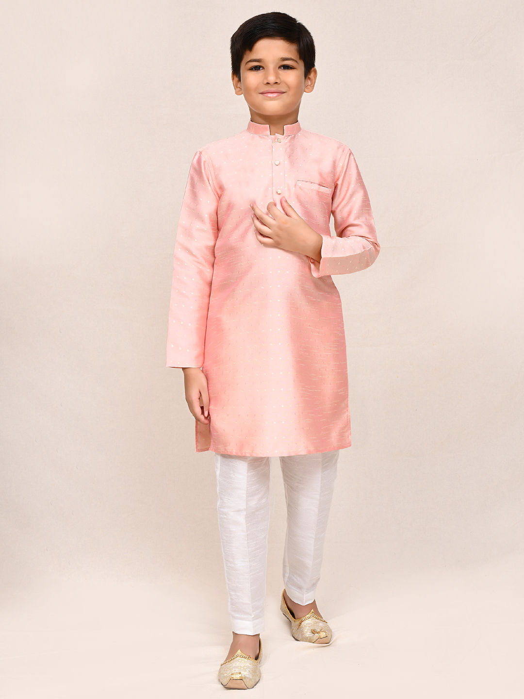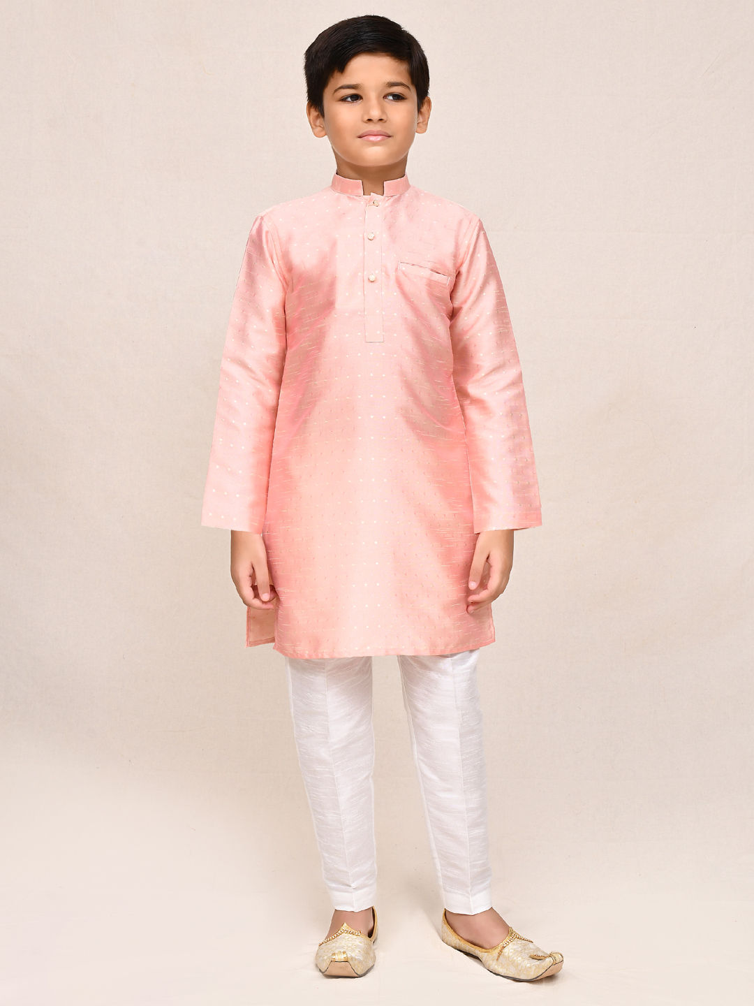 Pink and Majenta color Boys Kurta Pyjama in Silk fabric with Printed work
