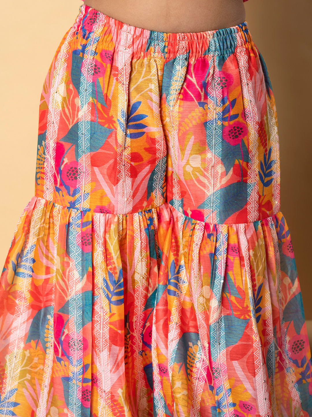 Orange color Girls Top with Bottom in Silk fabric with Gota Patti, Lace, Printed, Weaving work