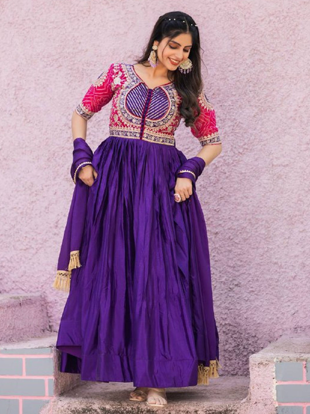 Blue color Gown in Silk fabric with Embroidered, Sequence, Thread work