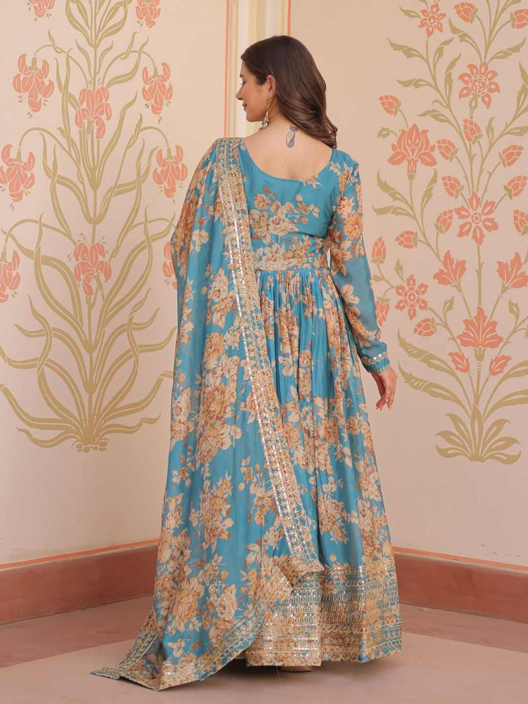 in Blue with Floral work