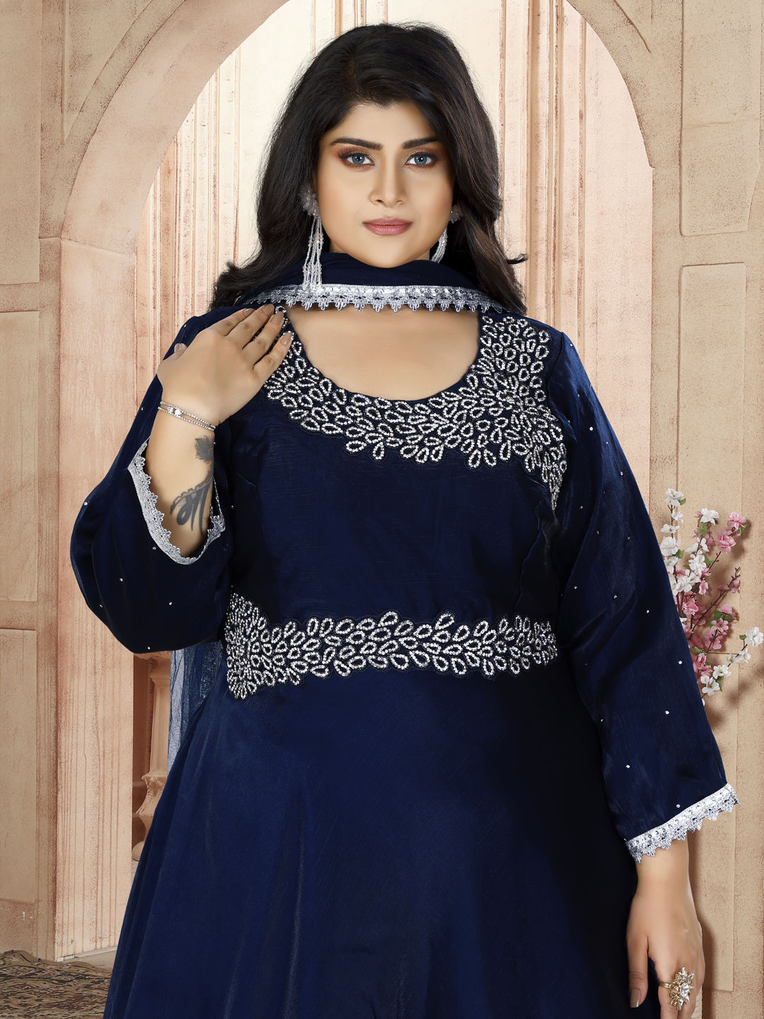 Blue color Gown in Silk fabric with Sequence, Stone work