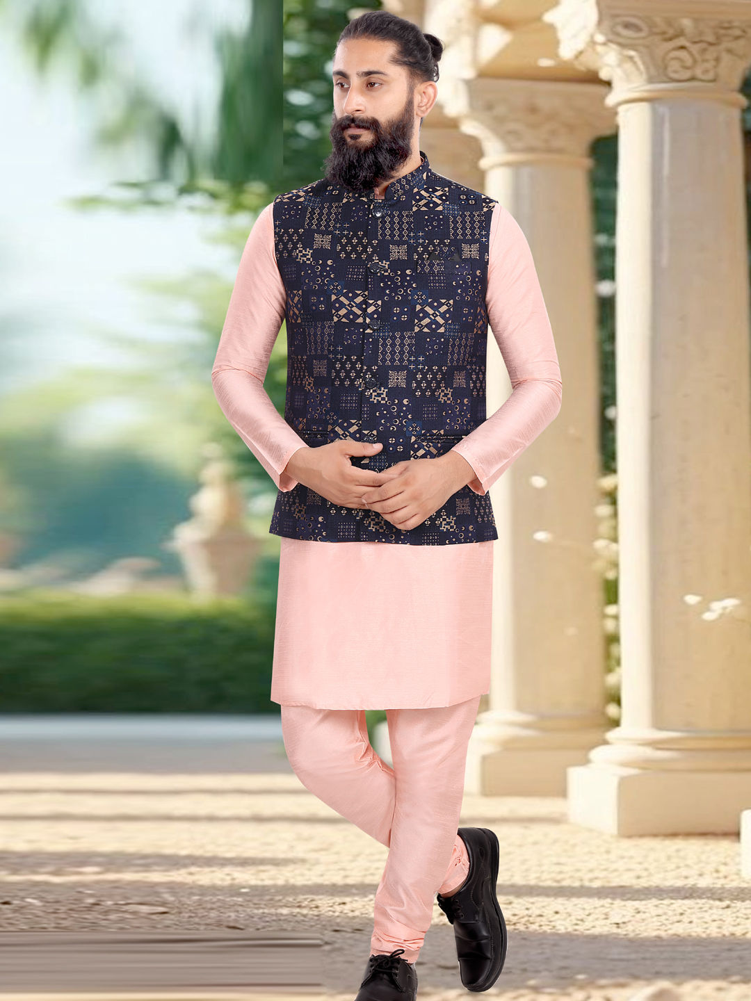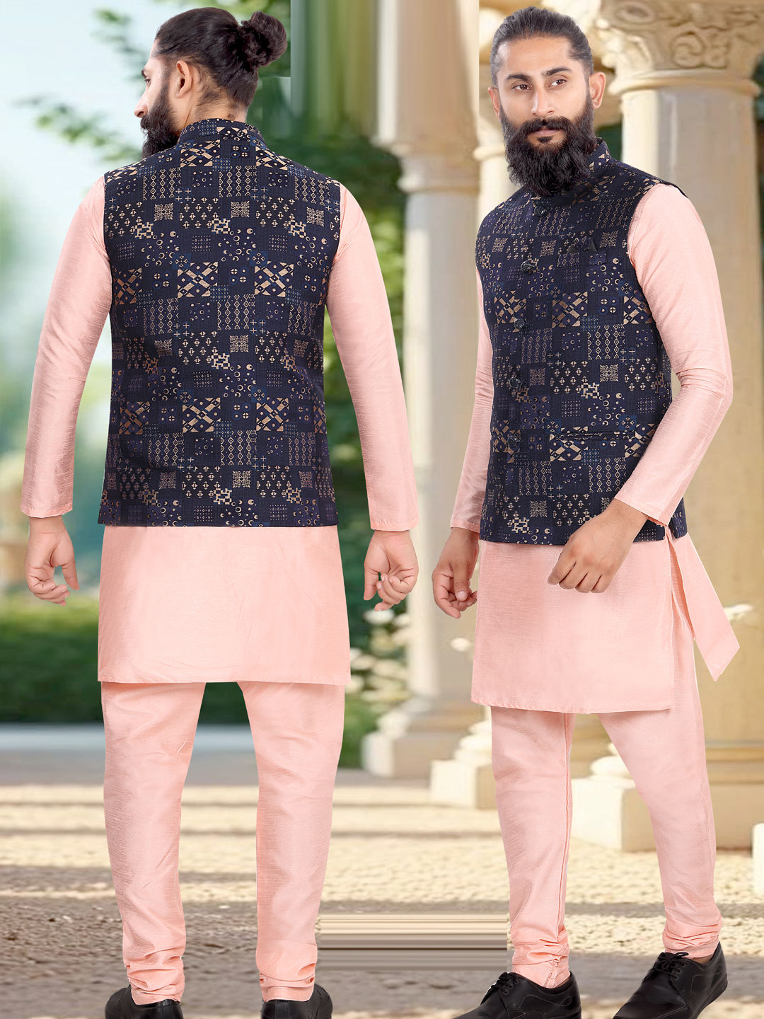 Pink and Majenta color Kurta Pyjama with Jacket in Silk fabric with Weaving work