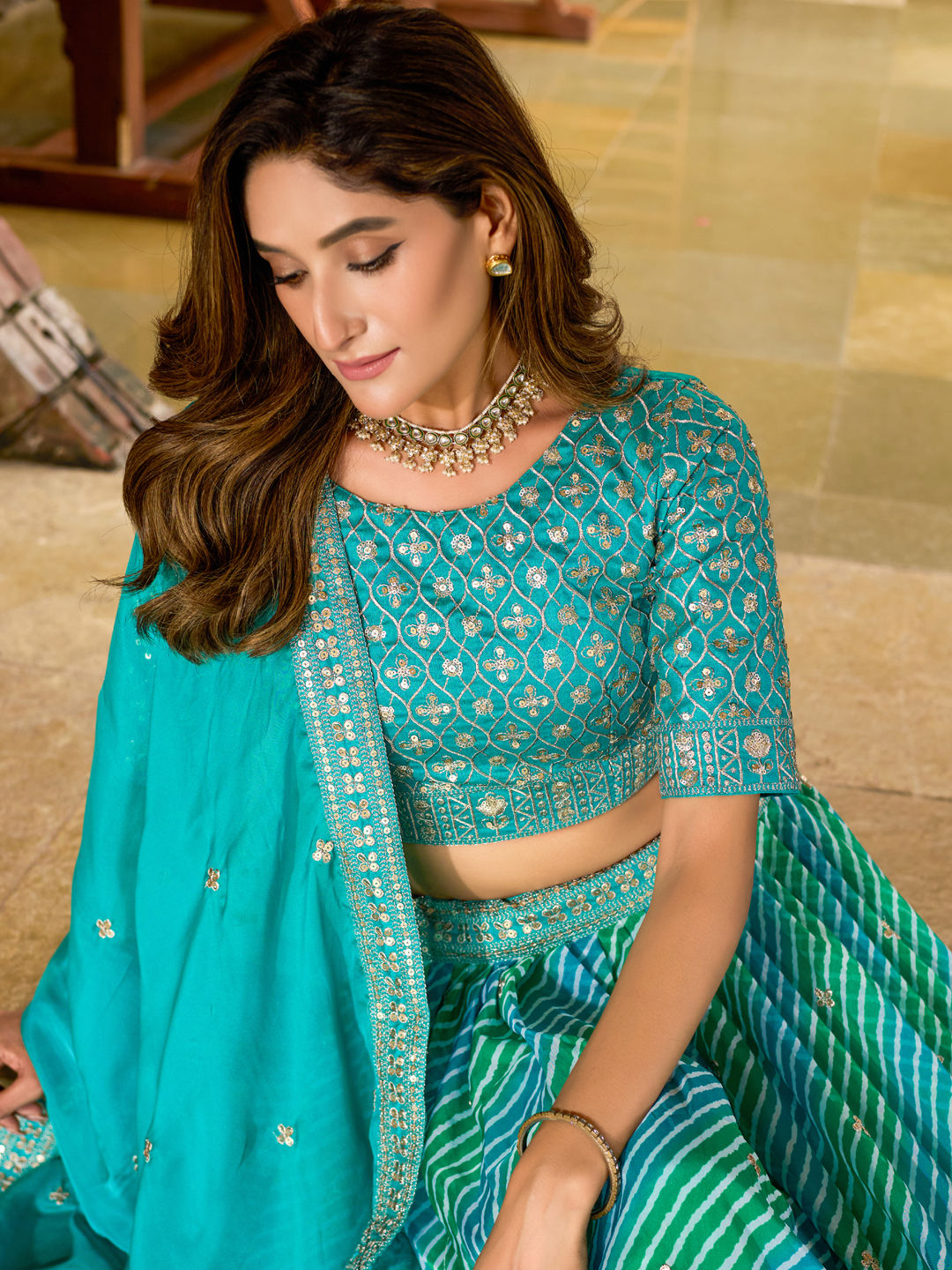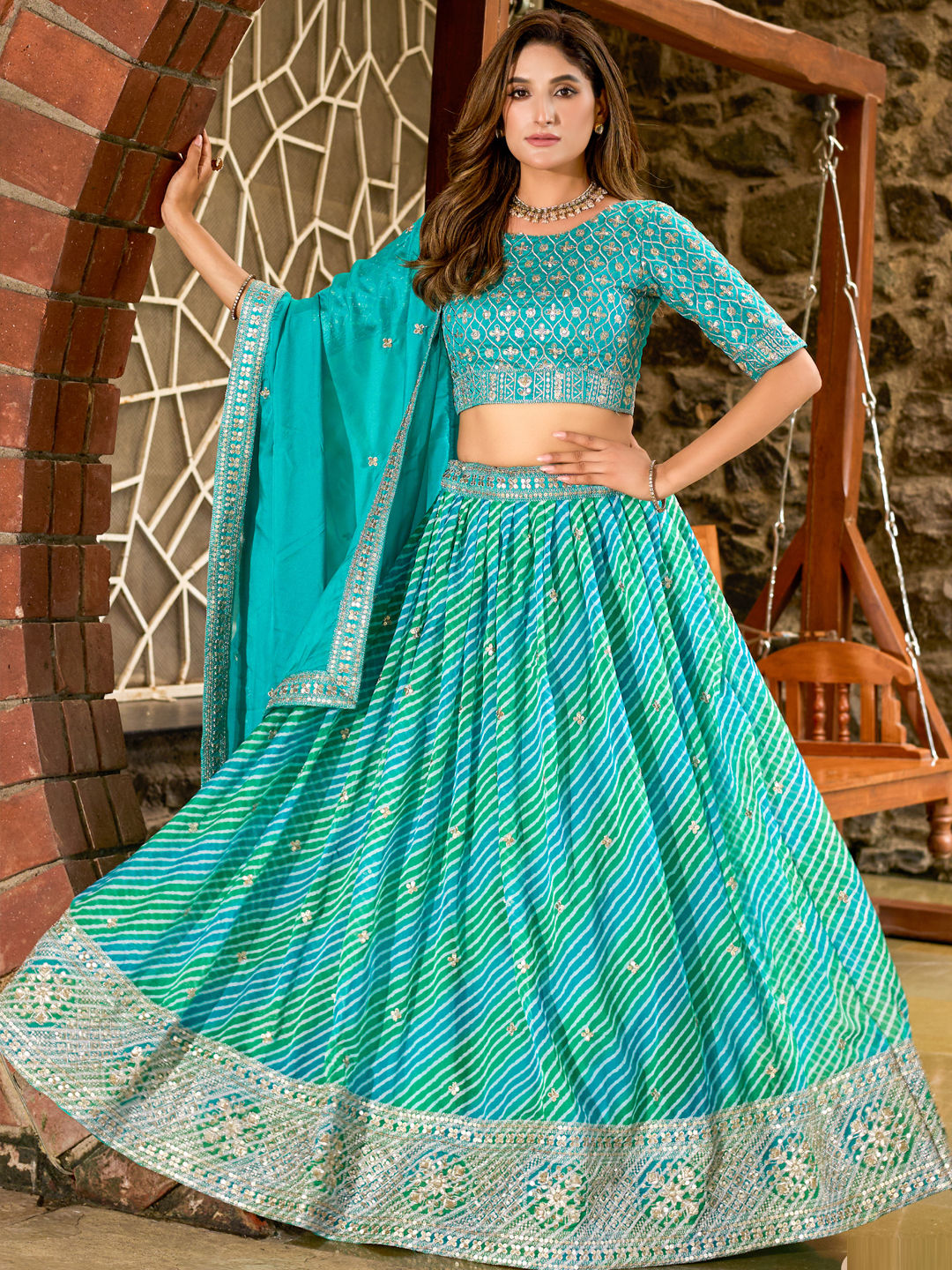 Blue color Lehenga in Silk fabric with Embroidered, Lehariya, Printed, Sequence work