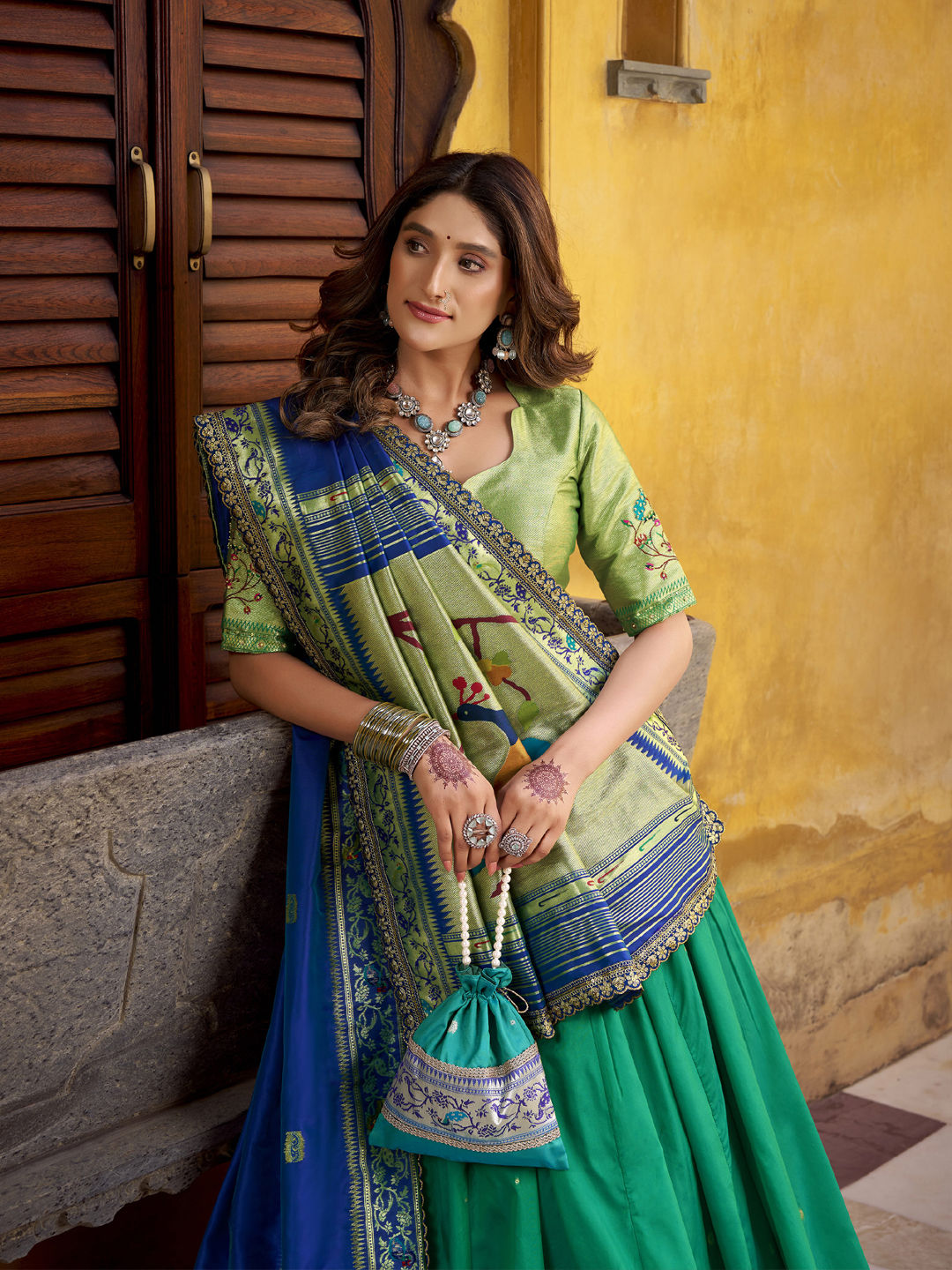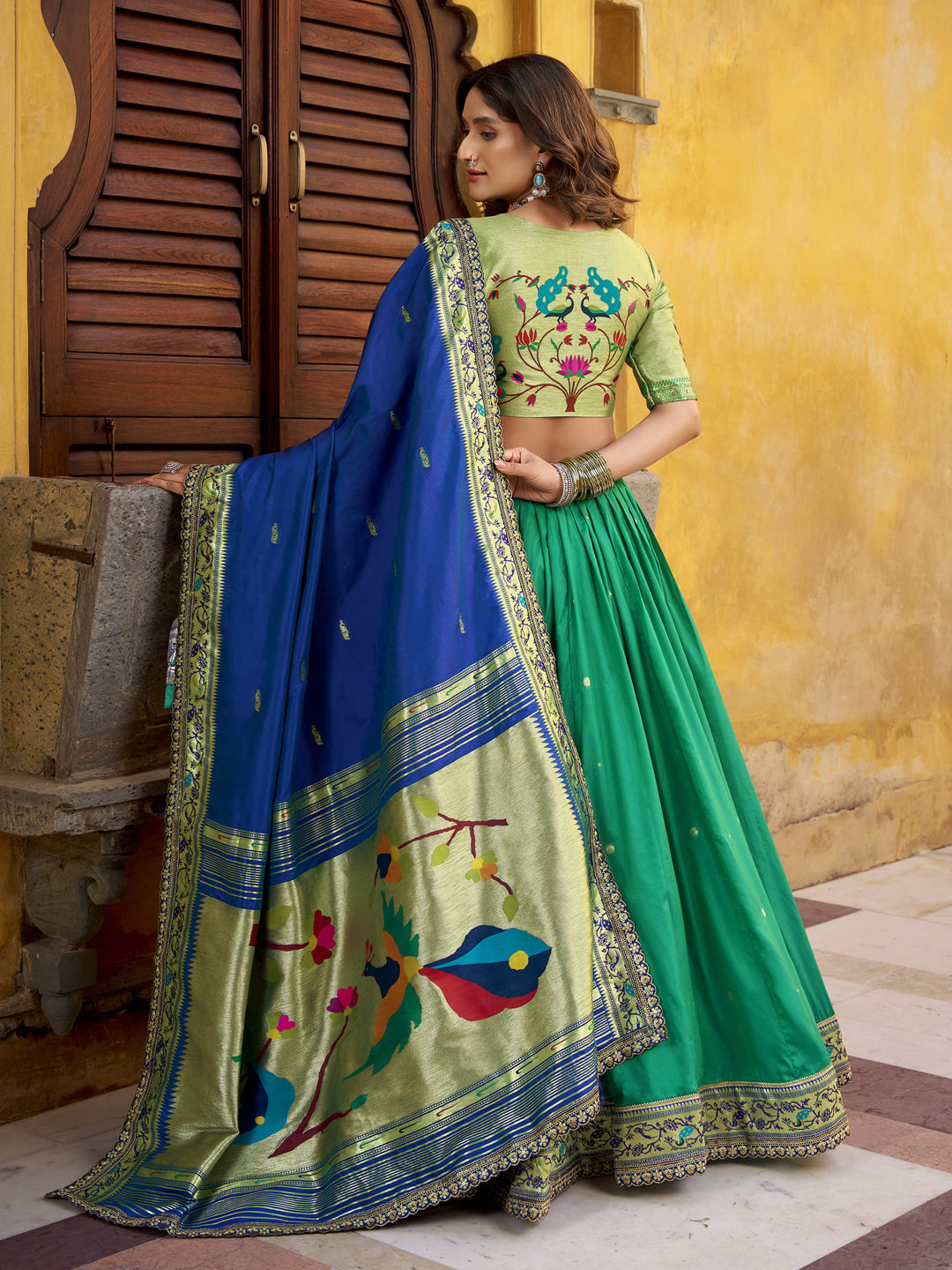 Silk Wedding Lehenga in Green with Zari work