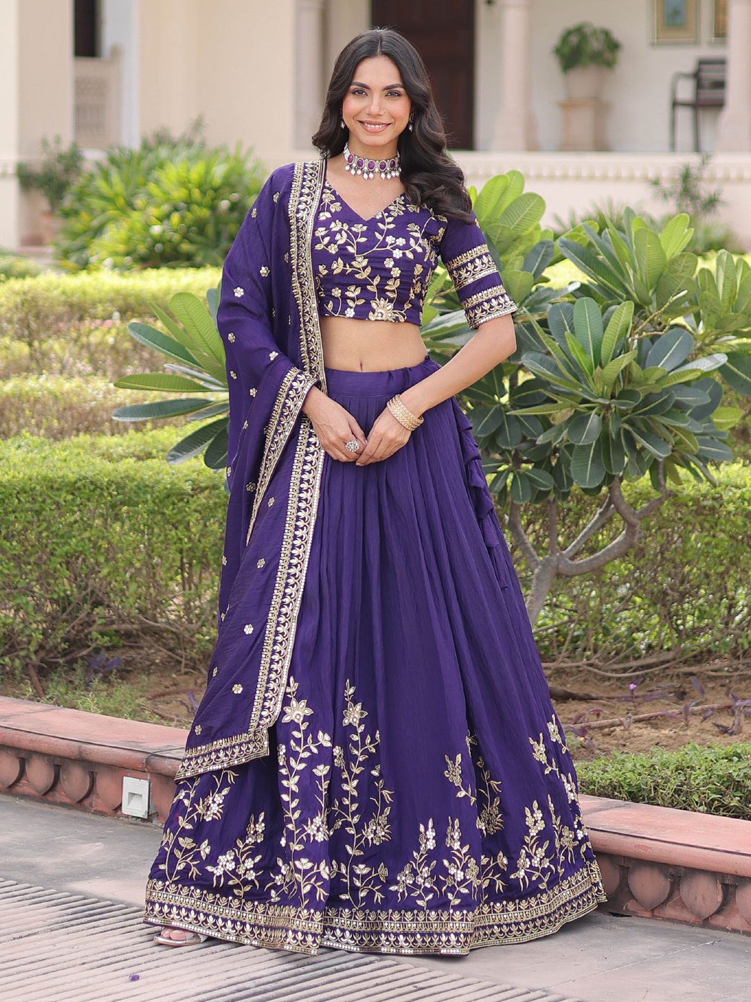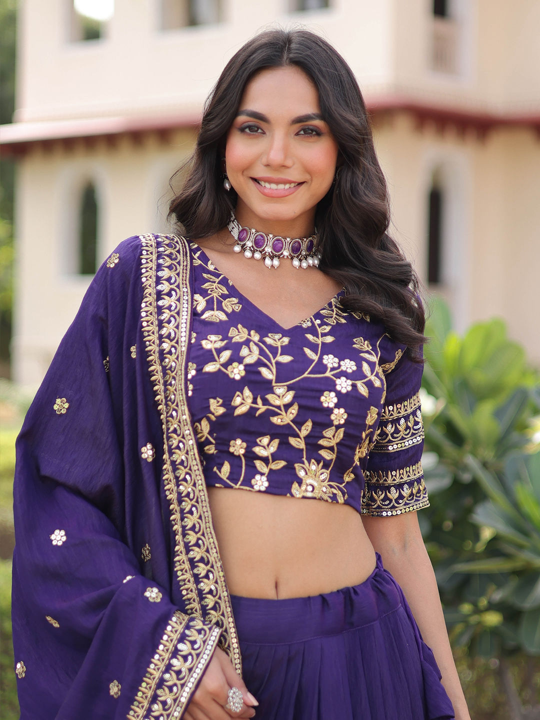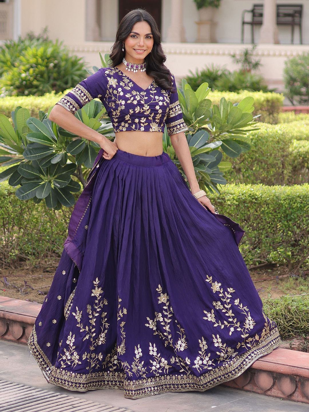 Purple and Violet color Lehenga in Silk fabric with Embroidered, Sequence, Zari work
