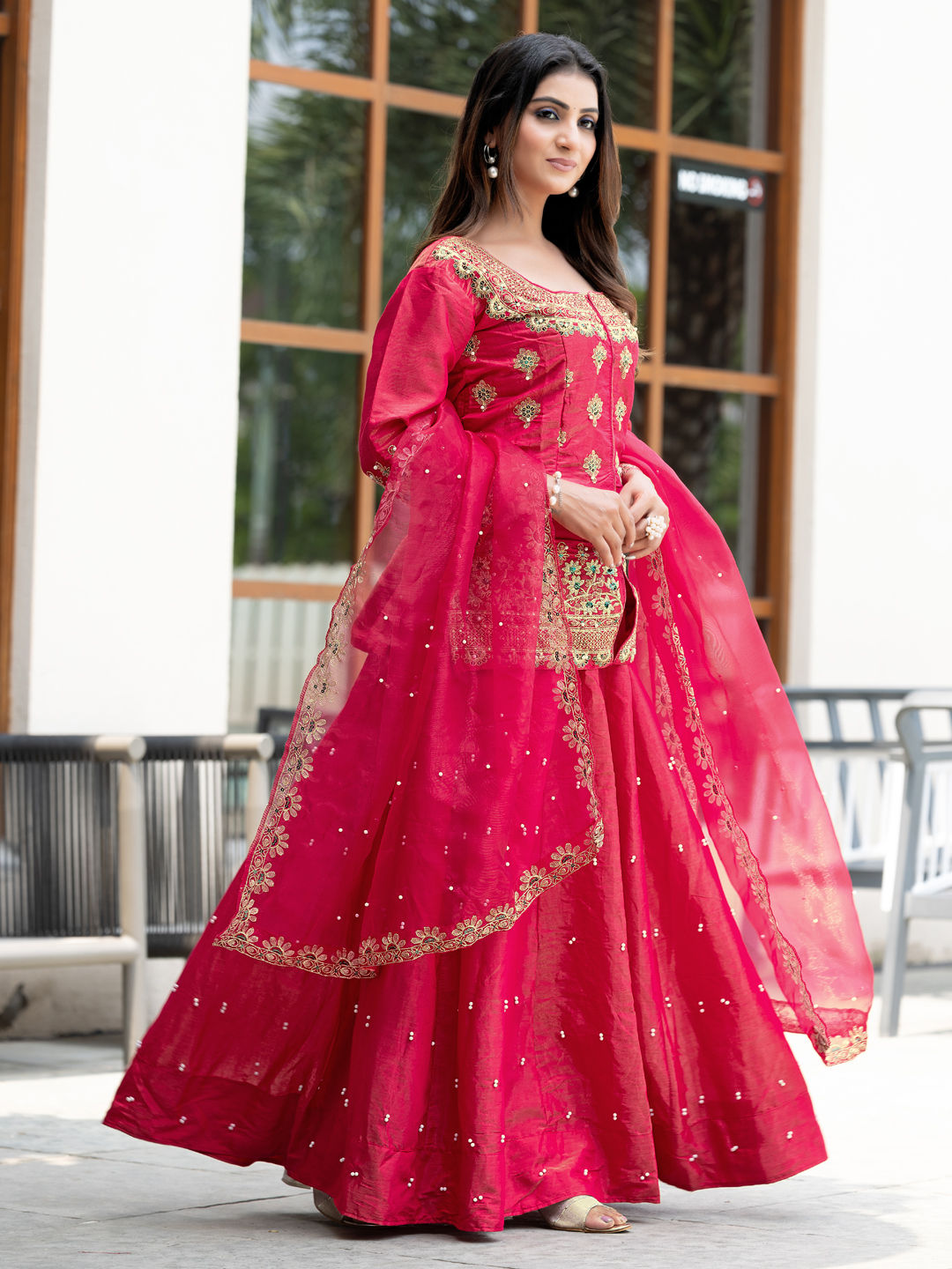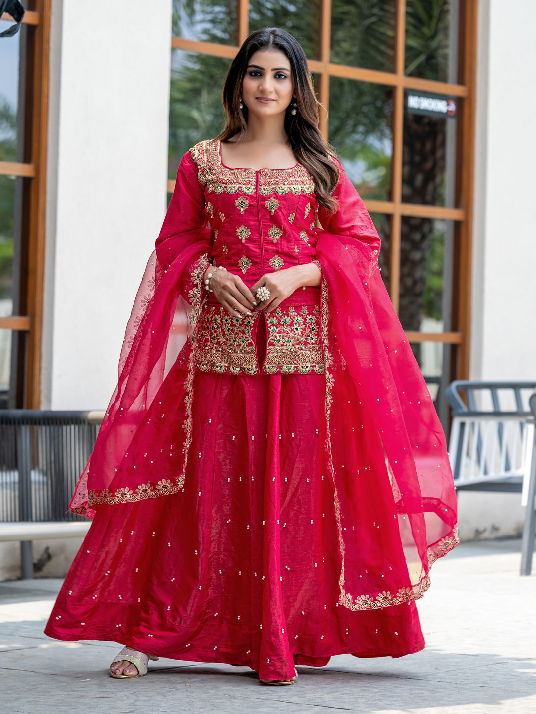 in Pink and Majenta with Embroidered work