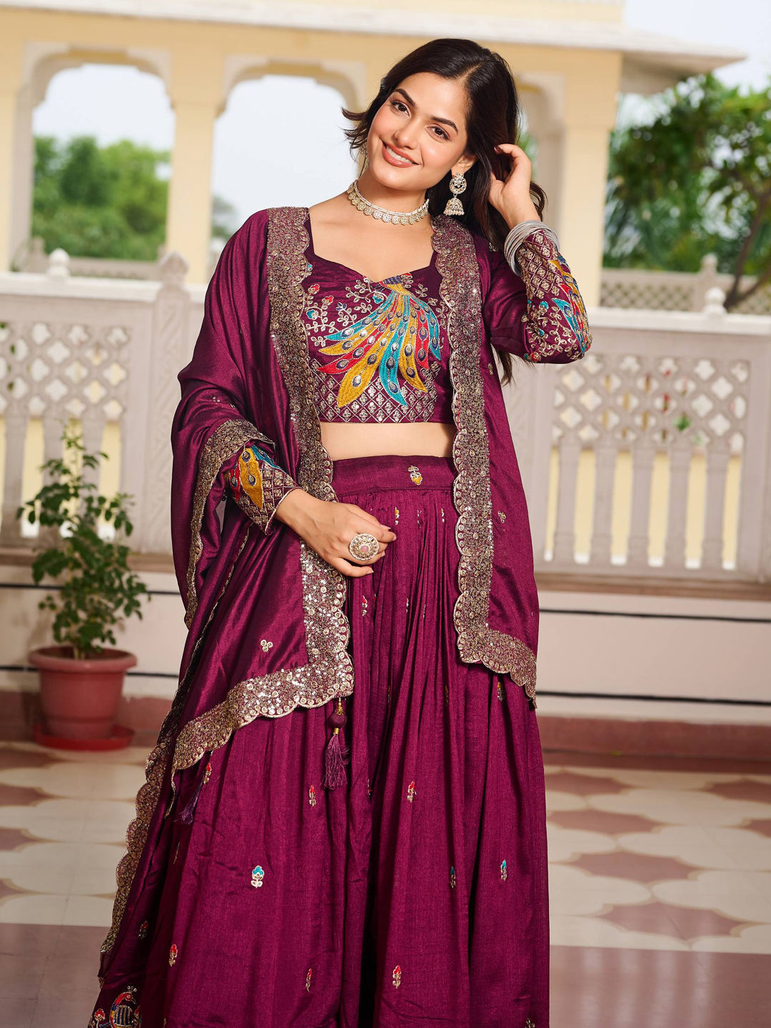 Silk Wedding Ready to Wear Lehenga in Purple and Violet with Thread work