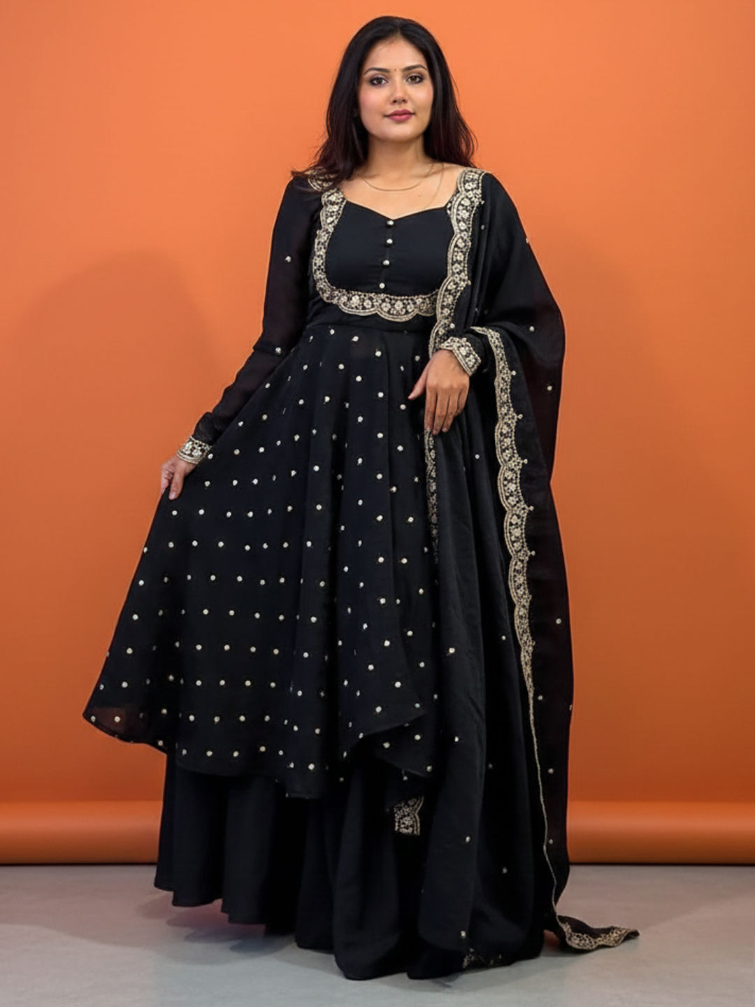 Black and Grey color Salwar Kameez in Silk fabric with Embroidered, Sequence, Thread work