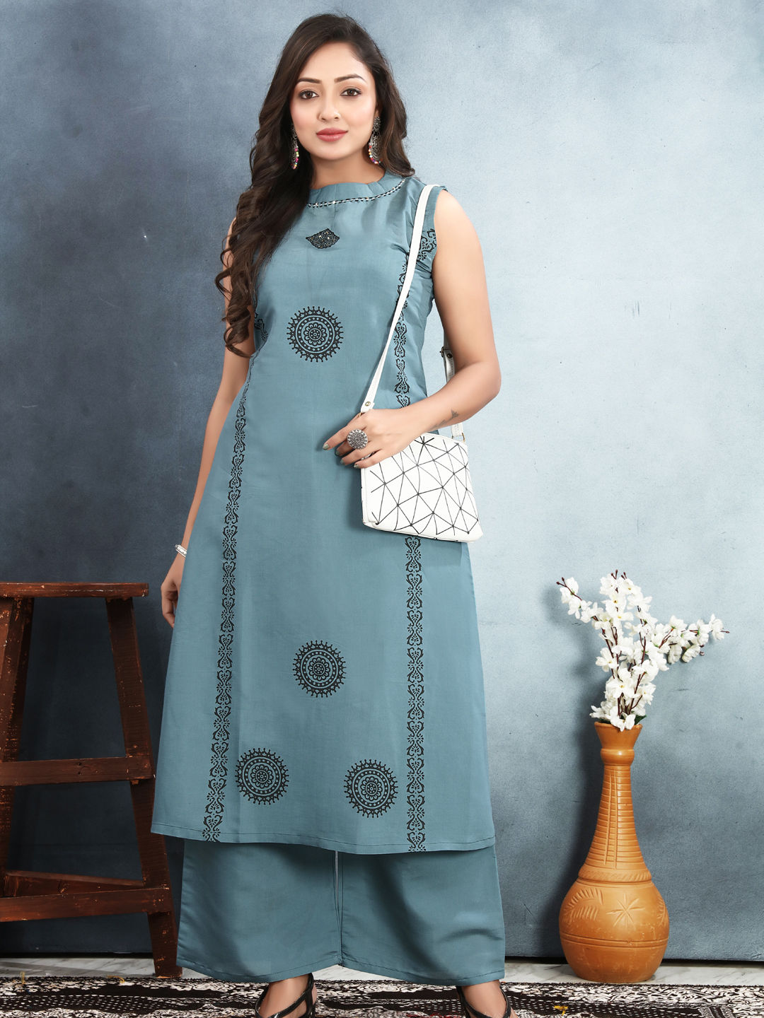 Black and Grey color Salwar Kameez in Silk fabric with Printed work