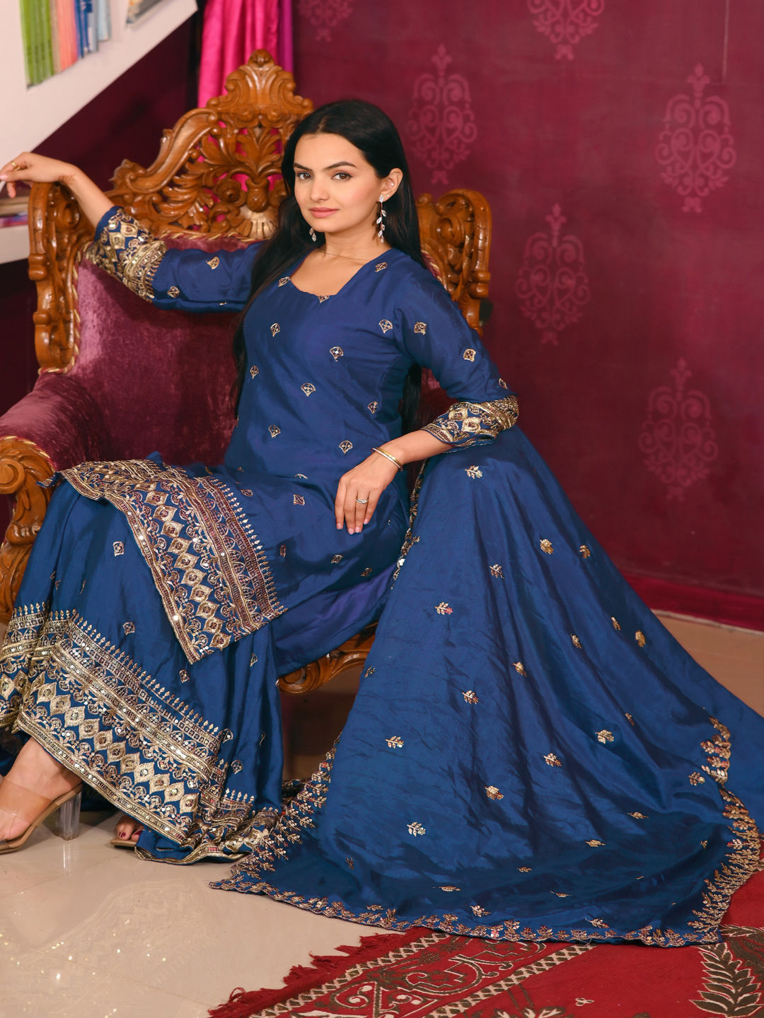 Blue color Salwar Kameez in Silk fabric with Embroidered, Sequence, Thread work