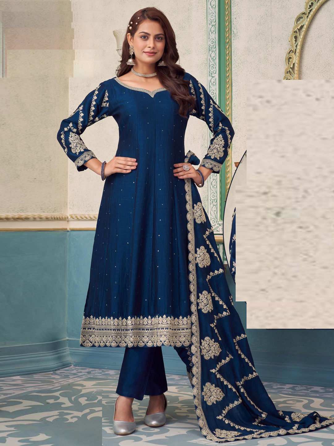 Blue color Salwar Kameez in Silk fabric with Embroidered, Sequence, Thread work