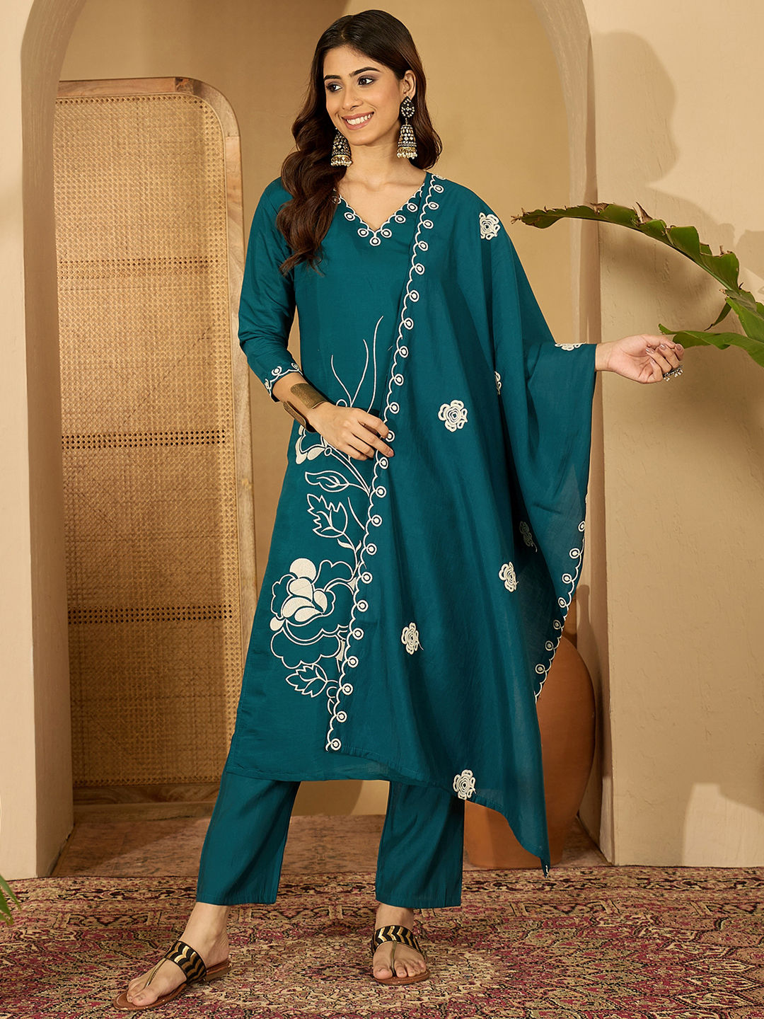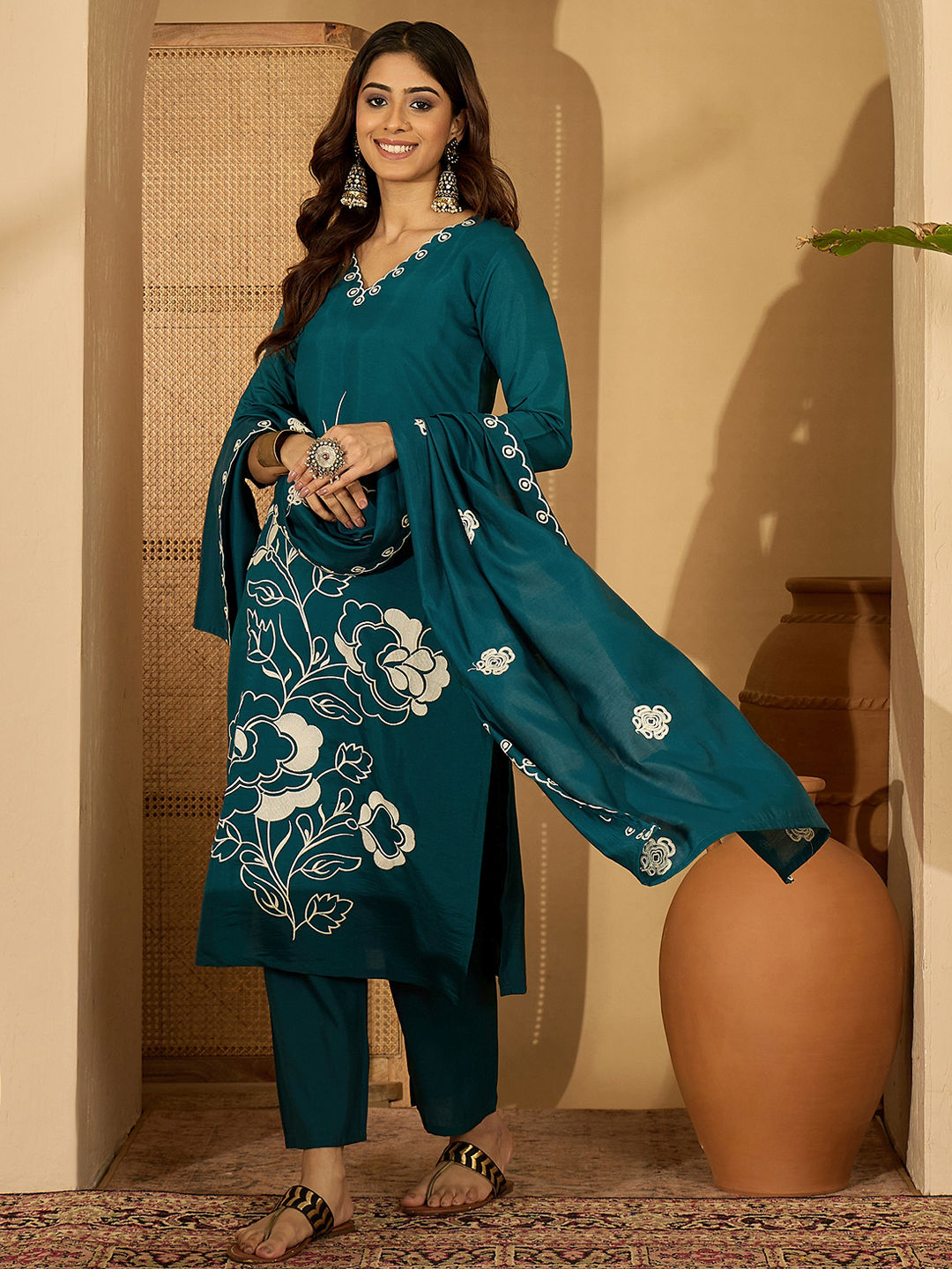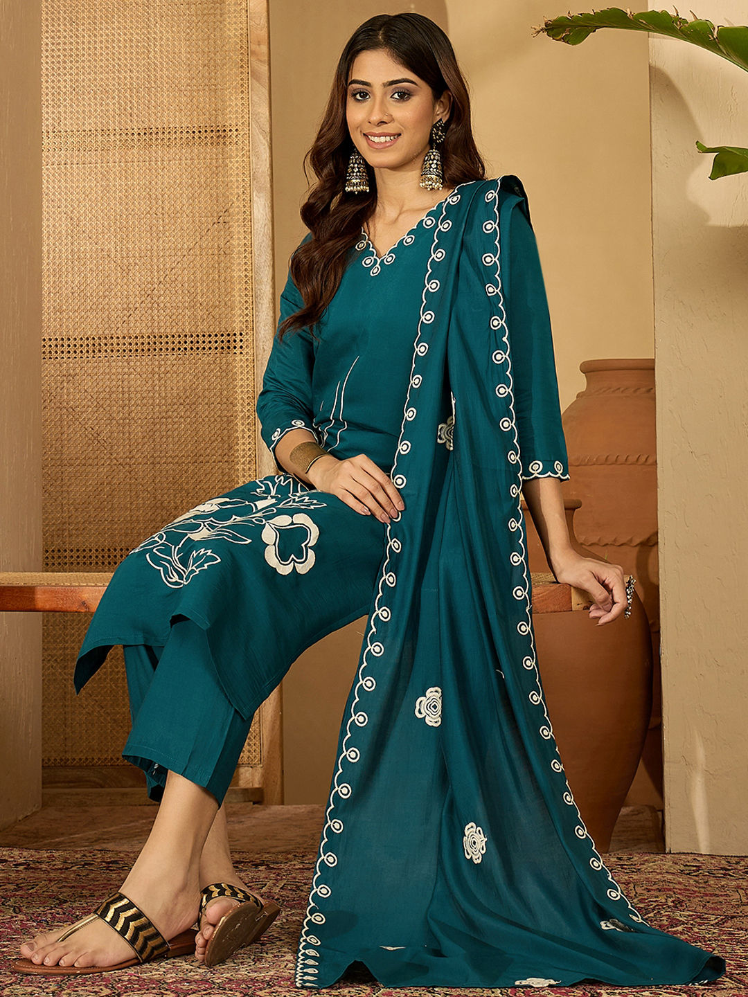 Blue color Salwar Kameez in Silk fabric with Embroidered work