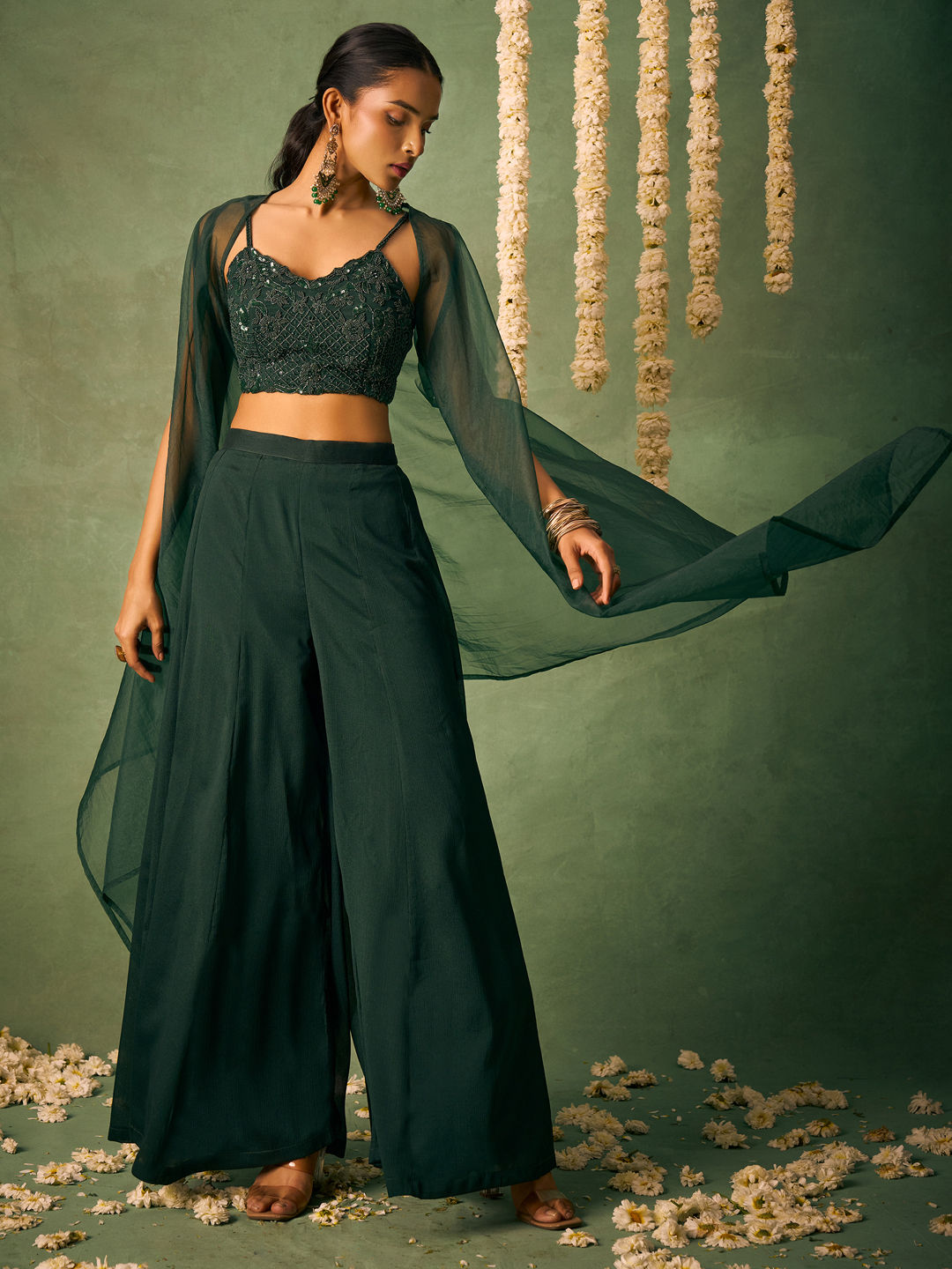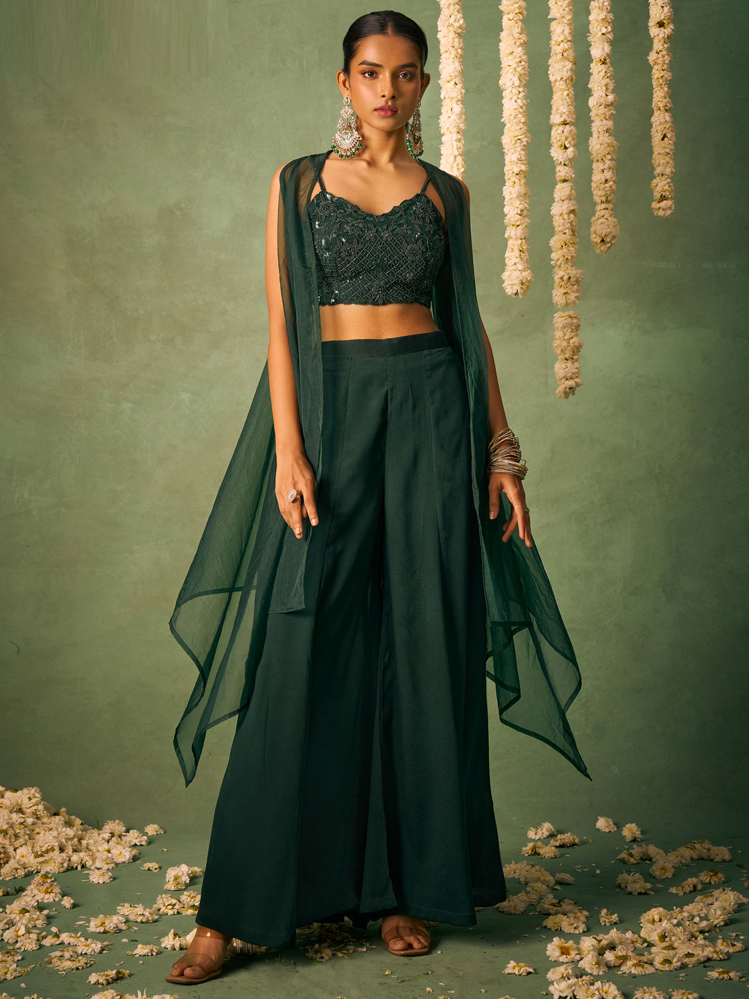 Green color Salwar Kameez in Silk fabric with Bugle Beads, Sequence work