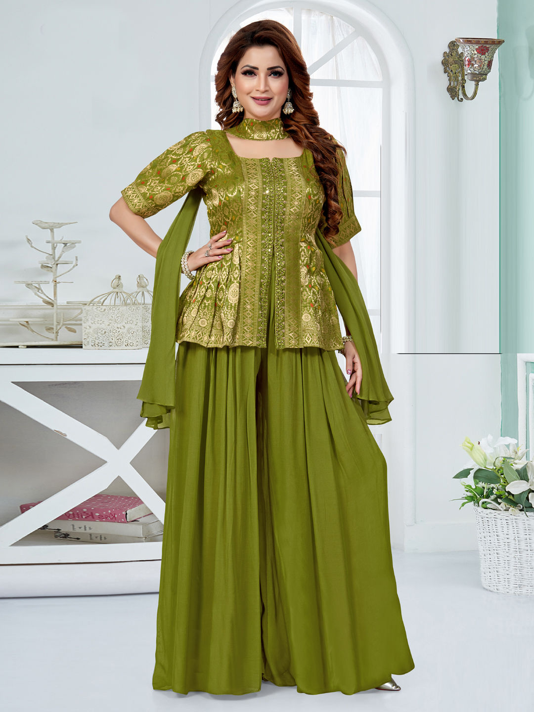 in Green with Embroidered work
